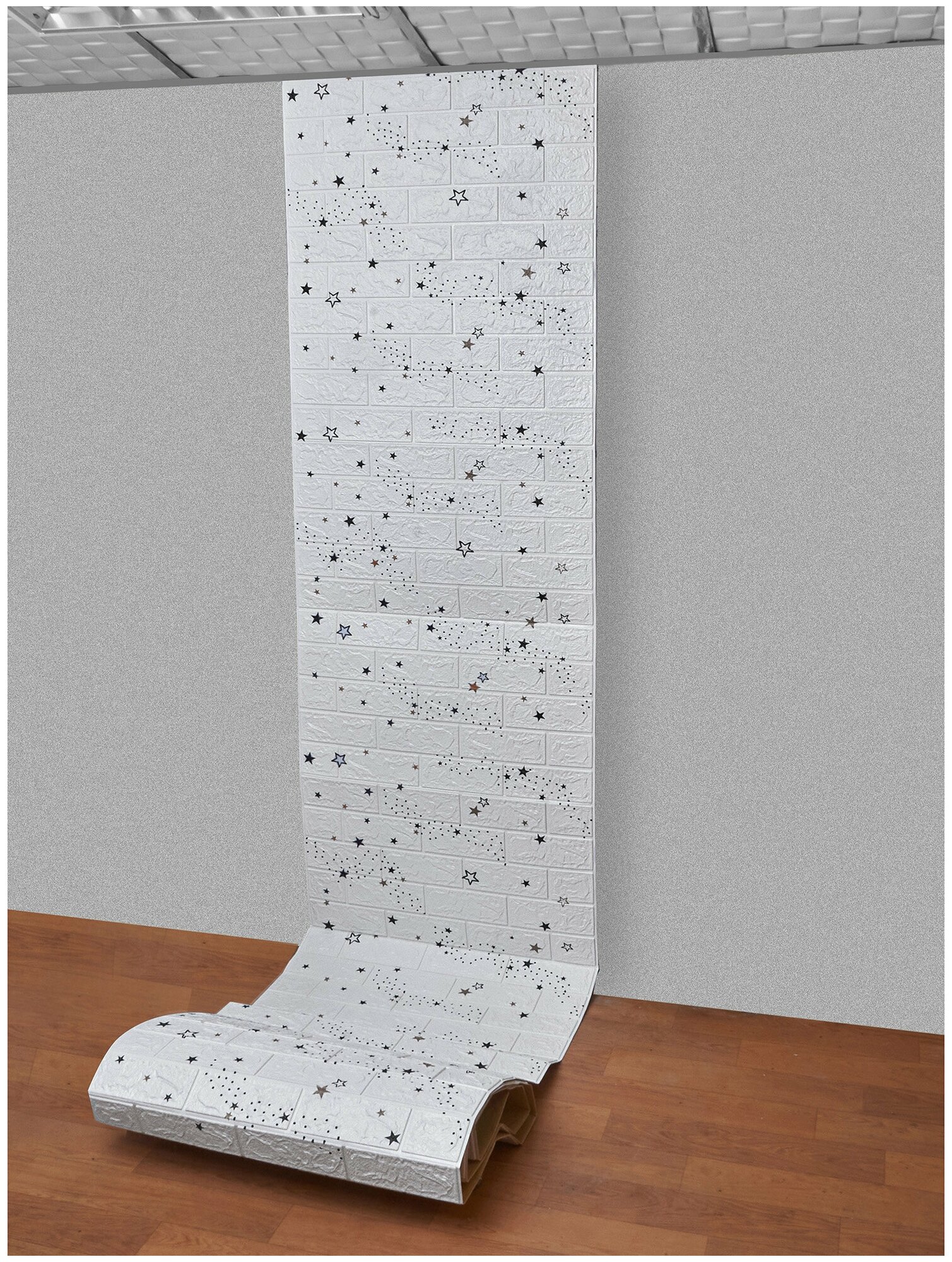 Самоклеящаяся ПВХ 3D-панель для стен в рулоне LAKO DECOR, Детская комната, Звездное небо (белый кирпич), 70x600см, толщина 5мм