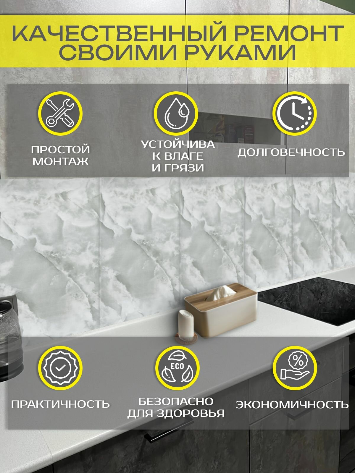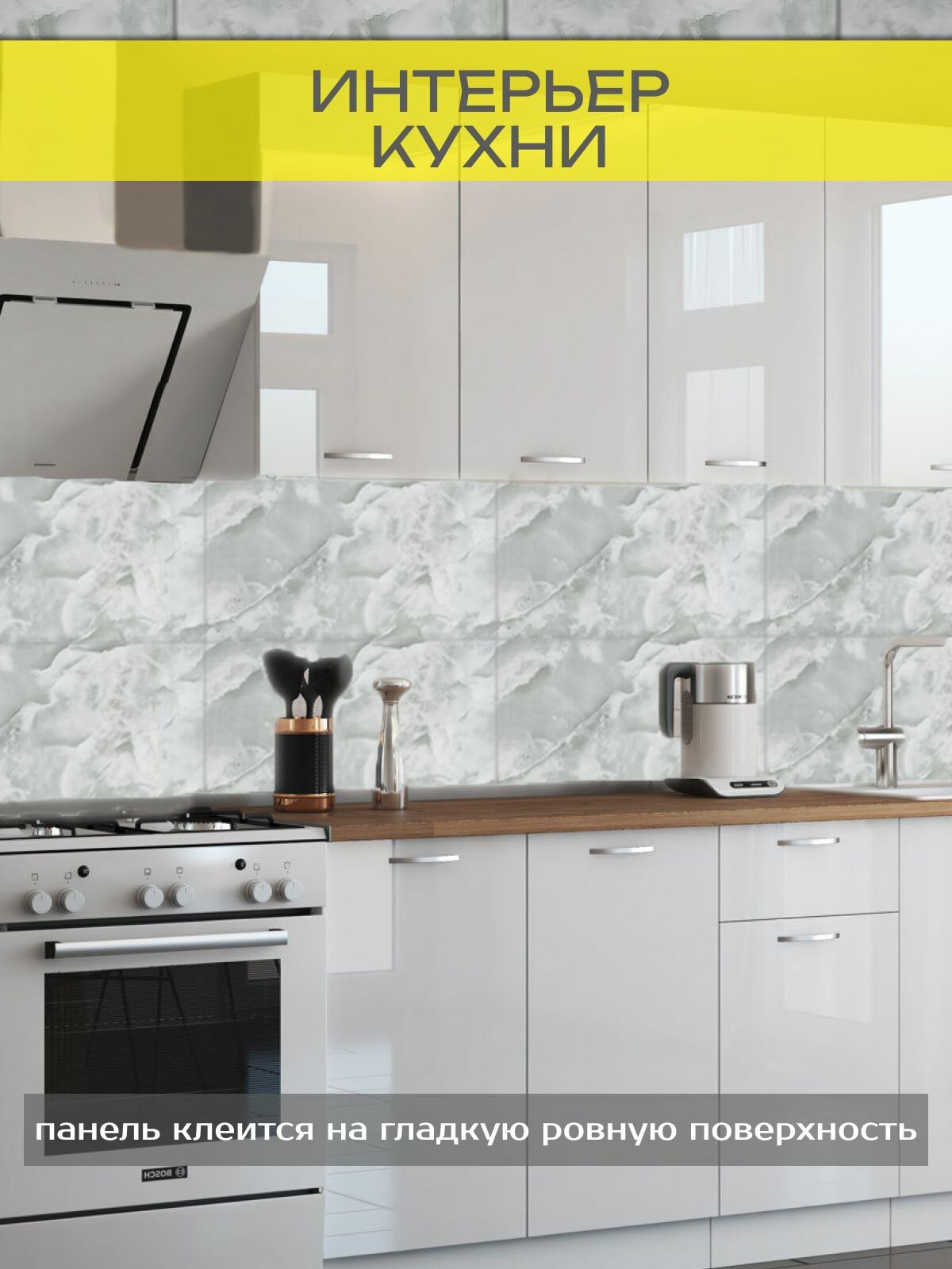 Панели для стен 60x30 см – 10 шт в наборе стеновые панели для кухни, ванной и гостиной. Цвет мраморные серые волны