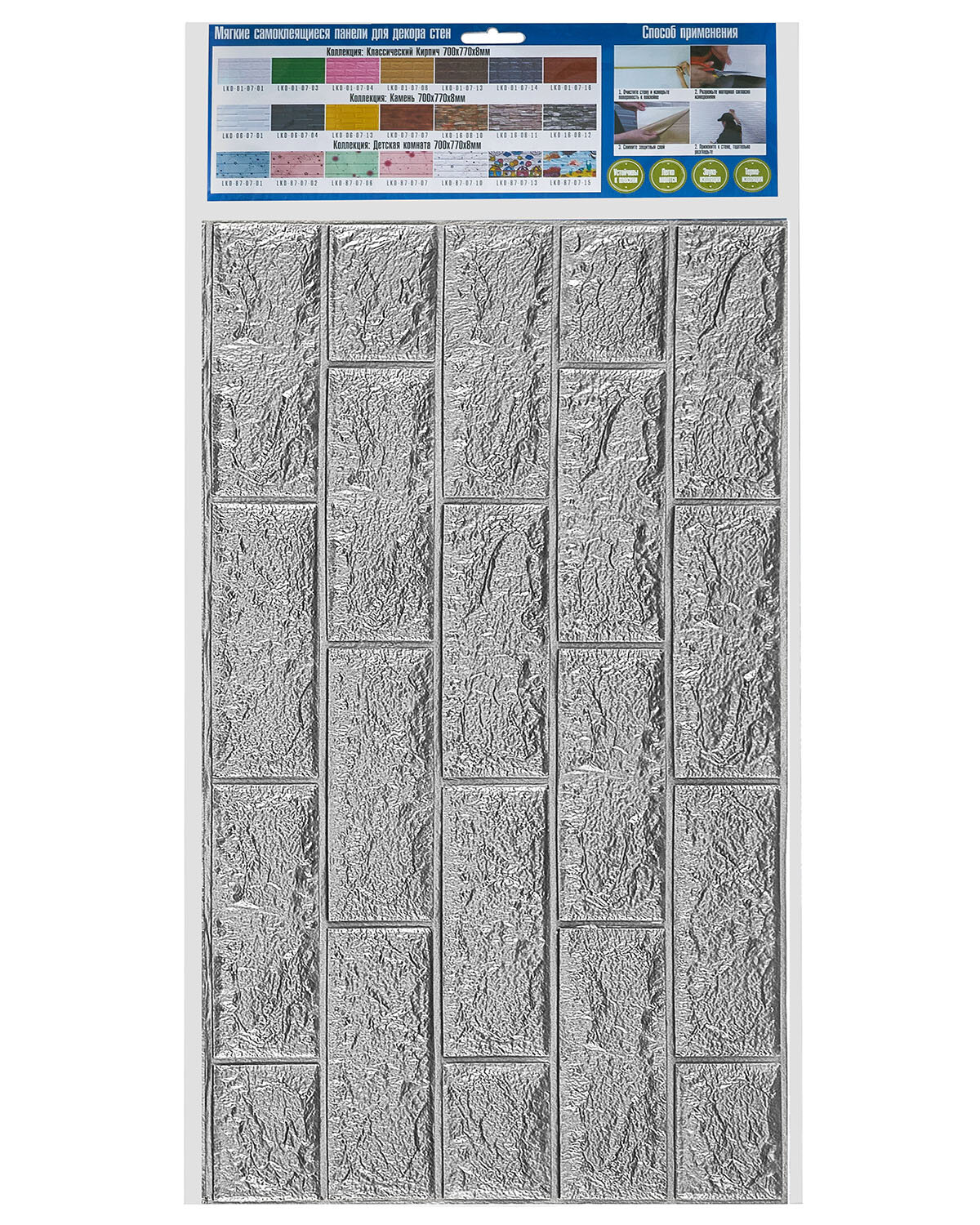 Купить Мягкая самоклеящаяся 3D панель пвх для стен LAKO DECOR, Классический кирпич Серебристый, 70x77см
