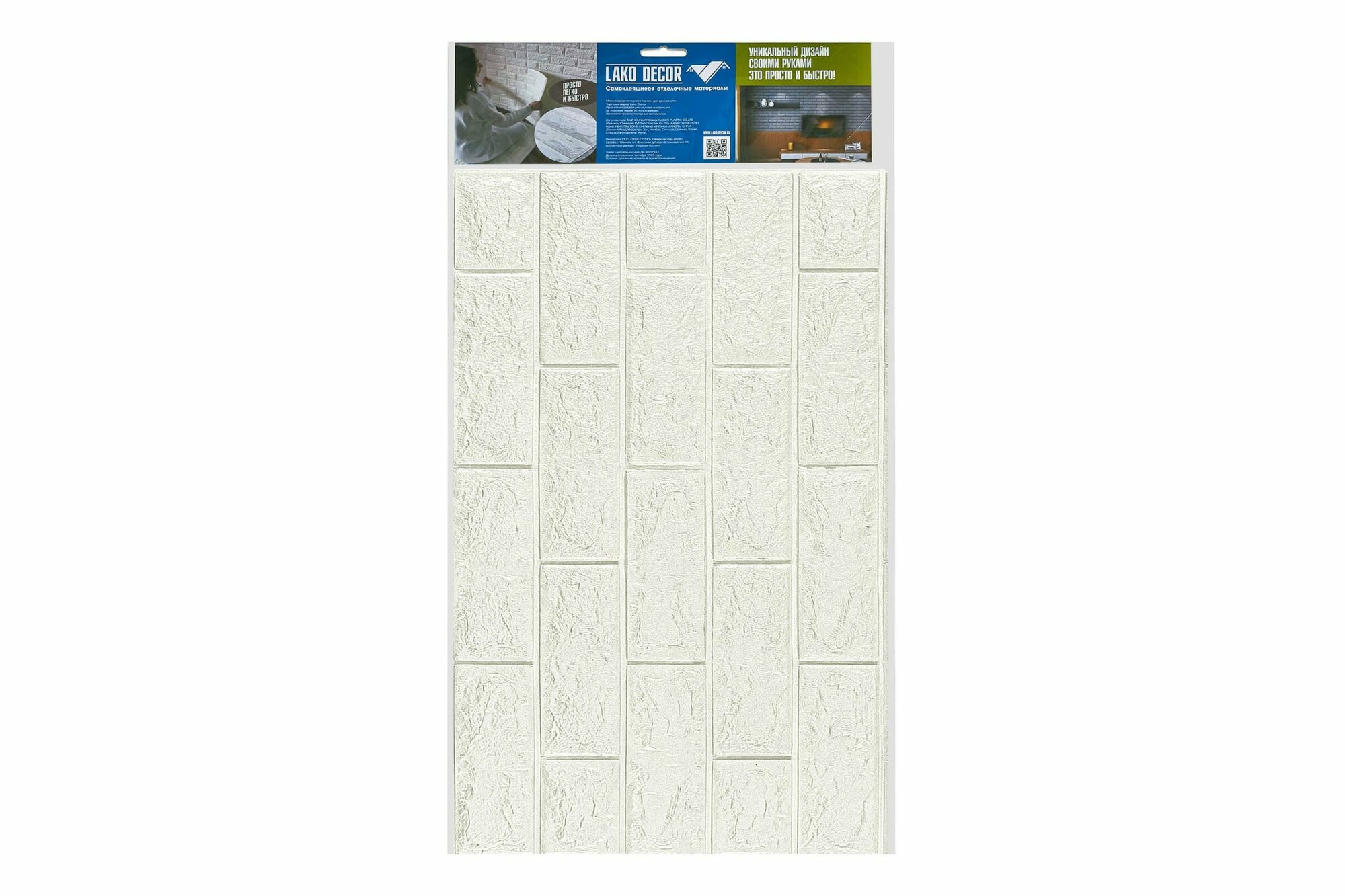 Панель ПВХ самоклеящаяся LAKO DECOR кирпич белый 70 х 77 СМ