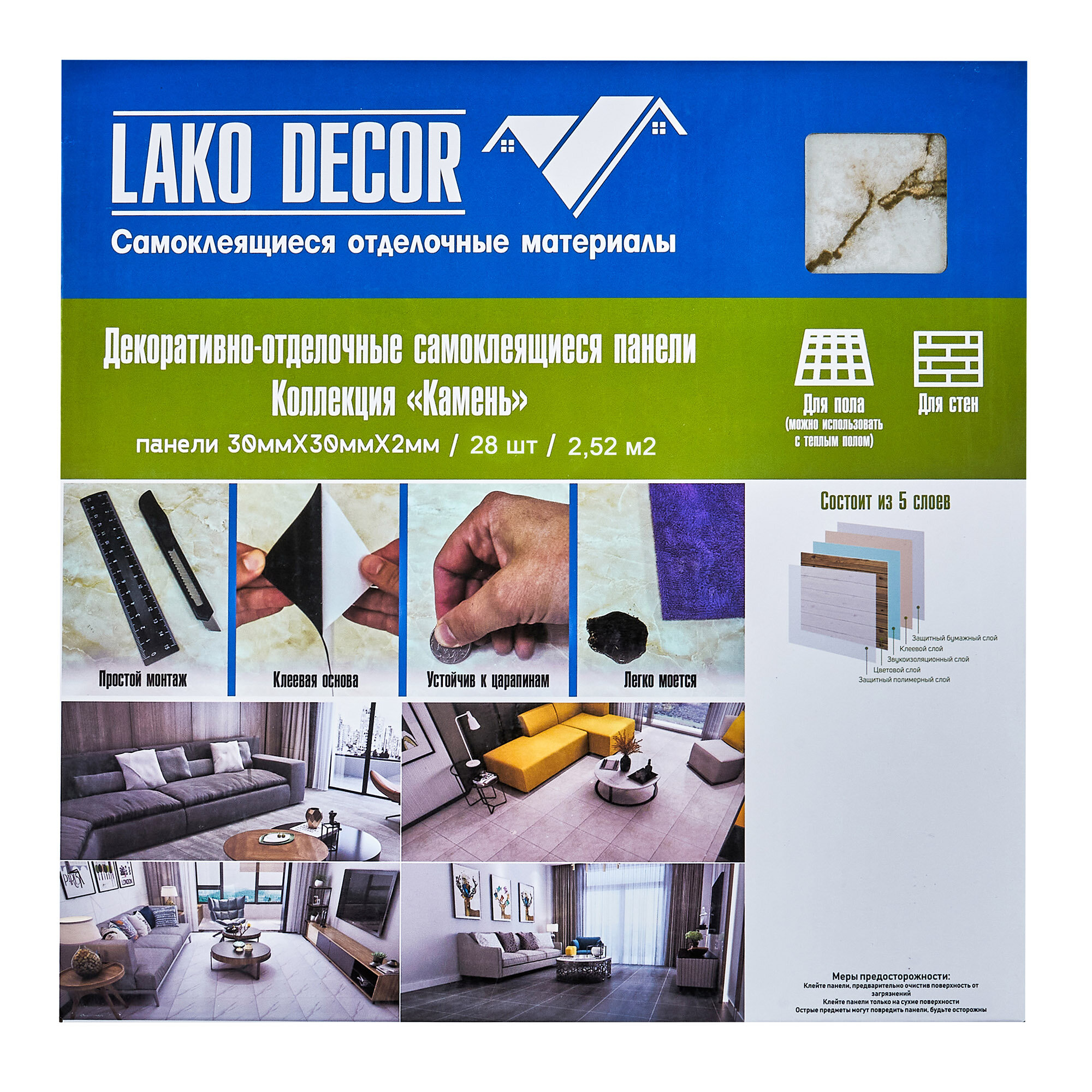 Комплект 28шт. Самоклеящаяся ПВХ плитка LAKO DECOR "Мрамор Карелия", толщина 2мм, 2.52м²
