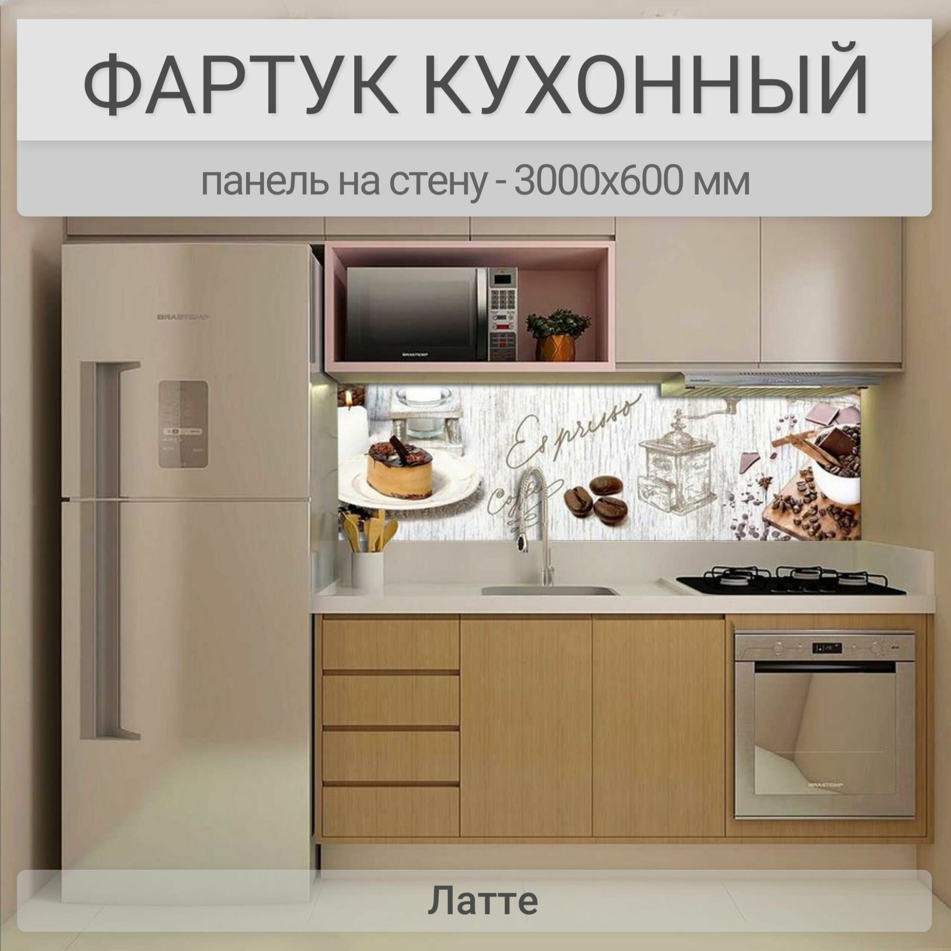 Фартук для кухни на стену 3000х600 мм, Латте интересное: