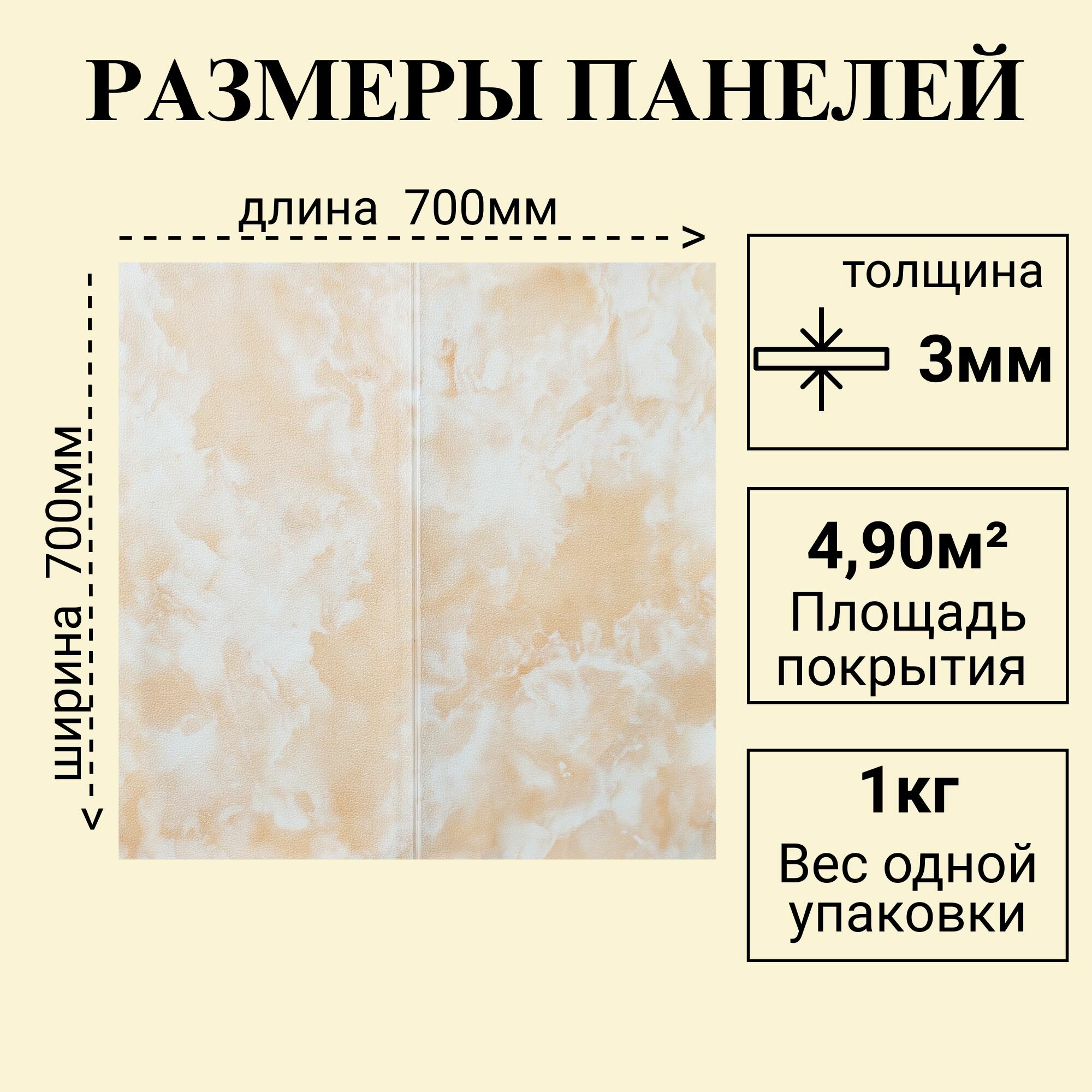 Панели 3D самоклеящиеся для стен арт 354 "Мрамор персиковый" 700х700х3мм 10шт