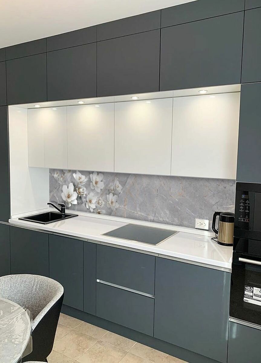 Фартук для кухни на стену 3000х600 мм, матовый Цветы. Панель стеновая ПВХ влагостойкая декоративная