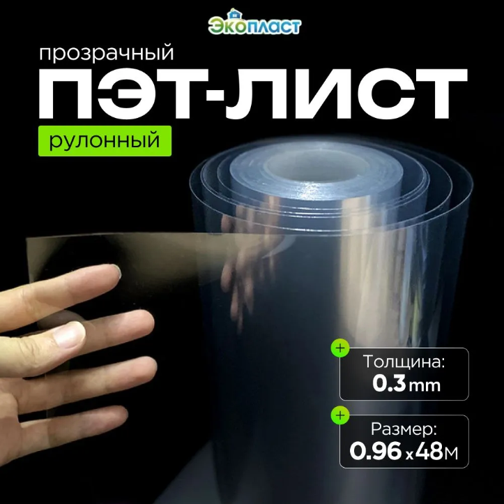 ПЭТ-лист прозрачный 0,96м х 48м, толщ. 0,3мм, ЭкоПласт