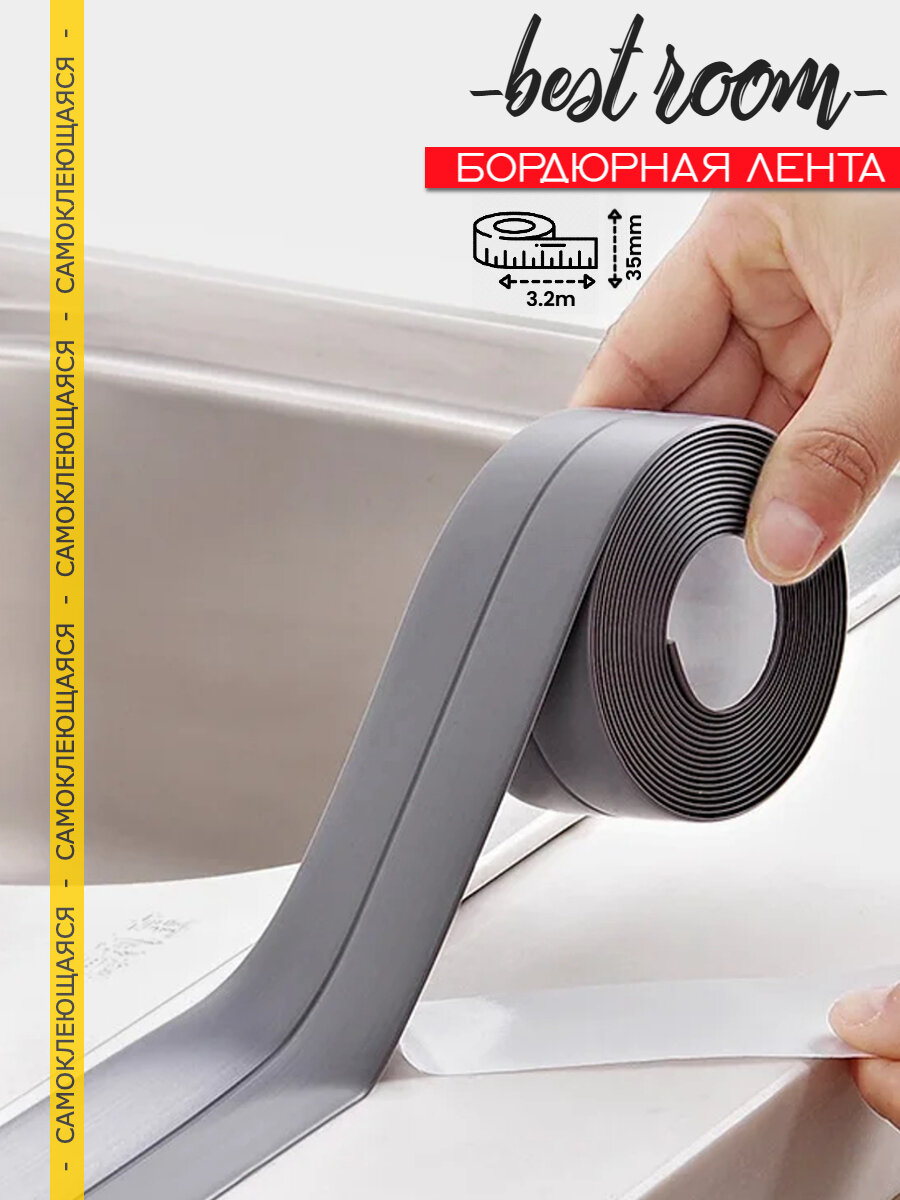 Лента бордюрная для ванны 35 мм х 3,2м серая, бордюр для ванны, плинтус для ванной интересное: