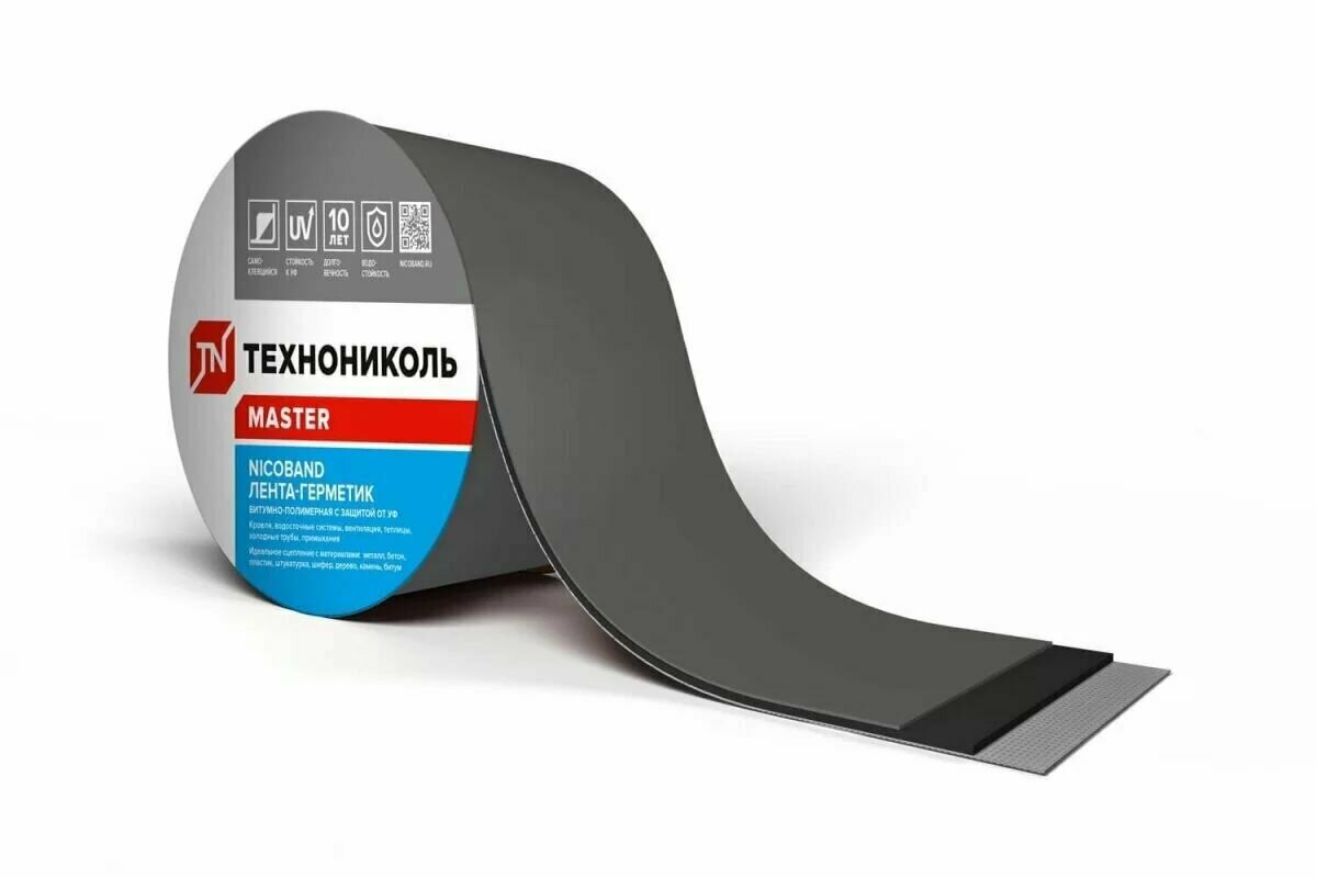 Лента-герметик самоклеящаяся Технониколь Nicoband, битумно-полимерная, 10 м x 15 см, темно-серая