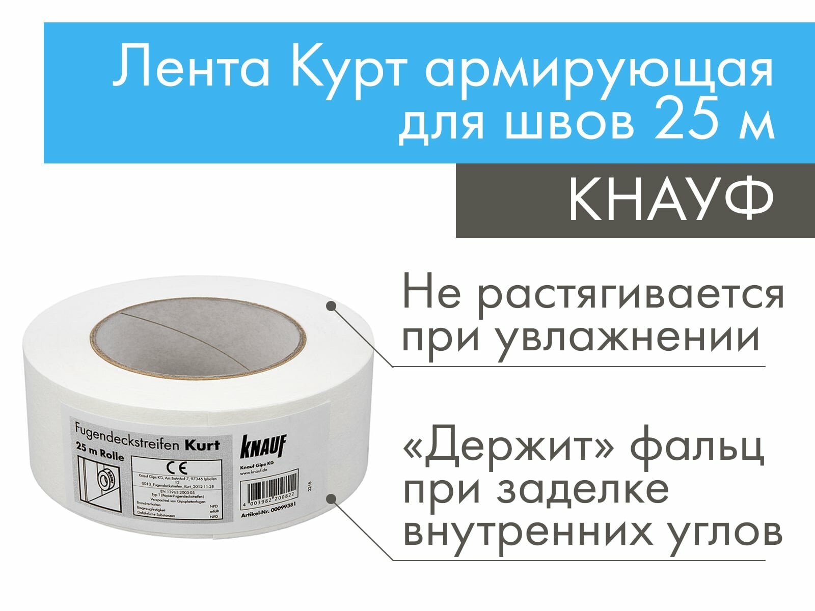 Лента Курт КНАУФ армирующая для швов 25 м
