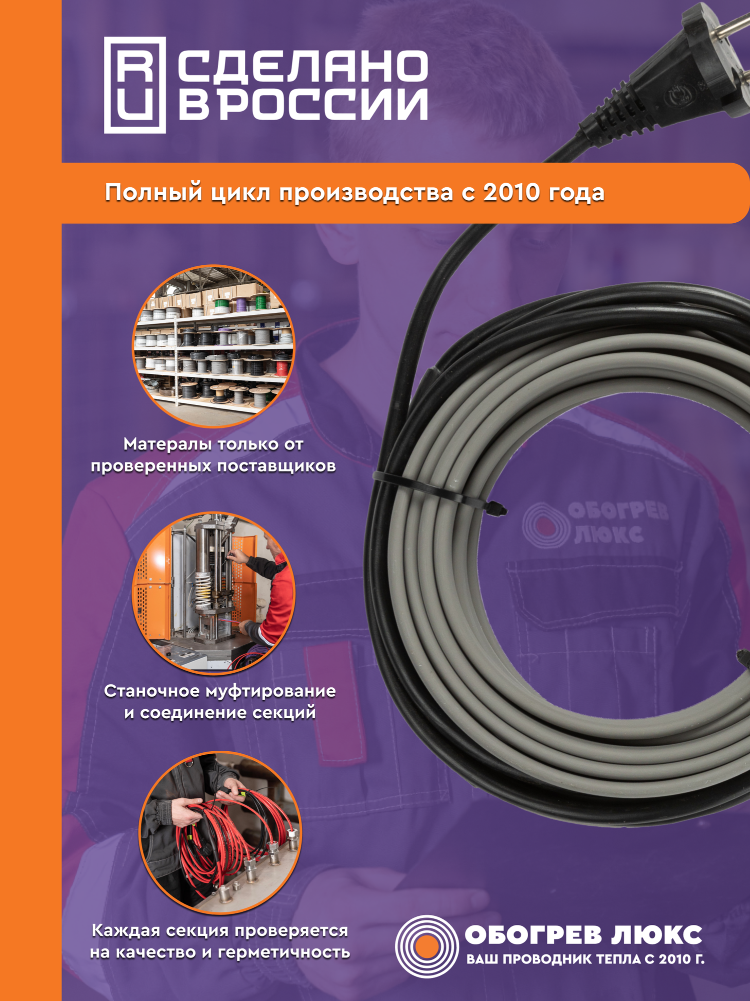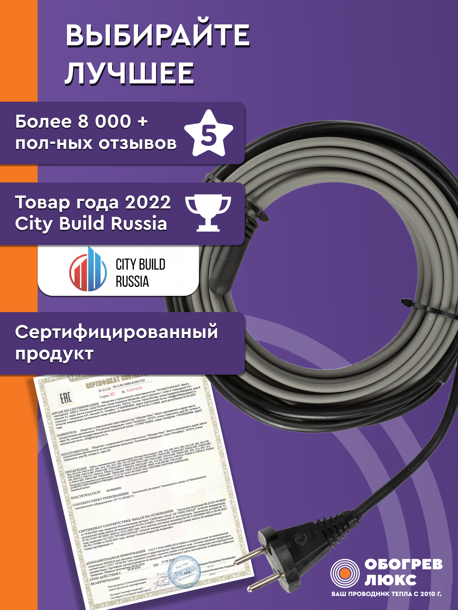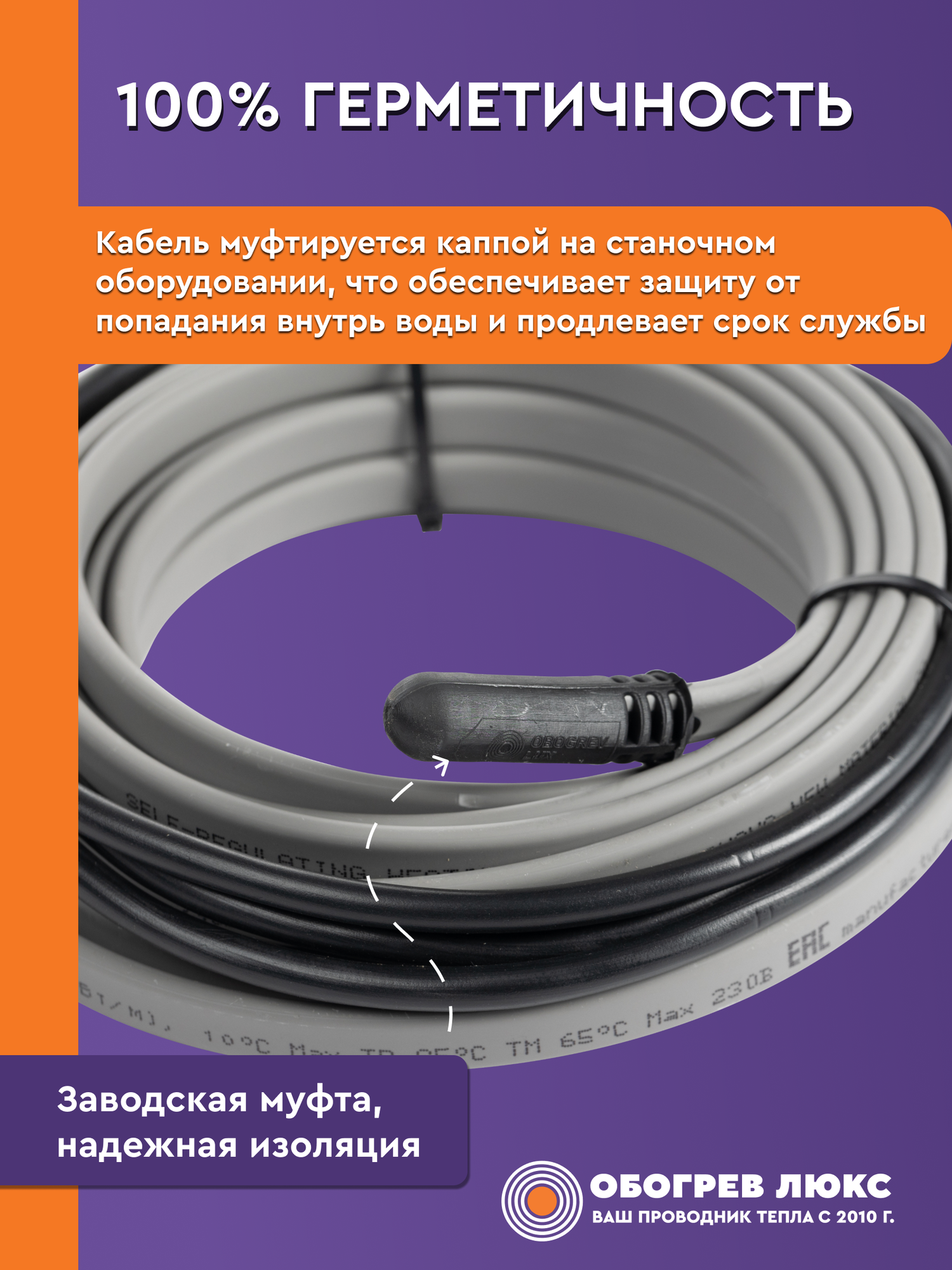 Греющий кабель обогрев люкс Греющий саморегулирующийся кабель в трубу 6 метров Обогрев Люкс с сальником