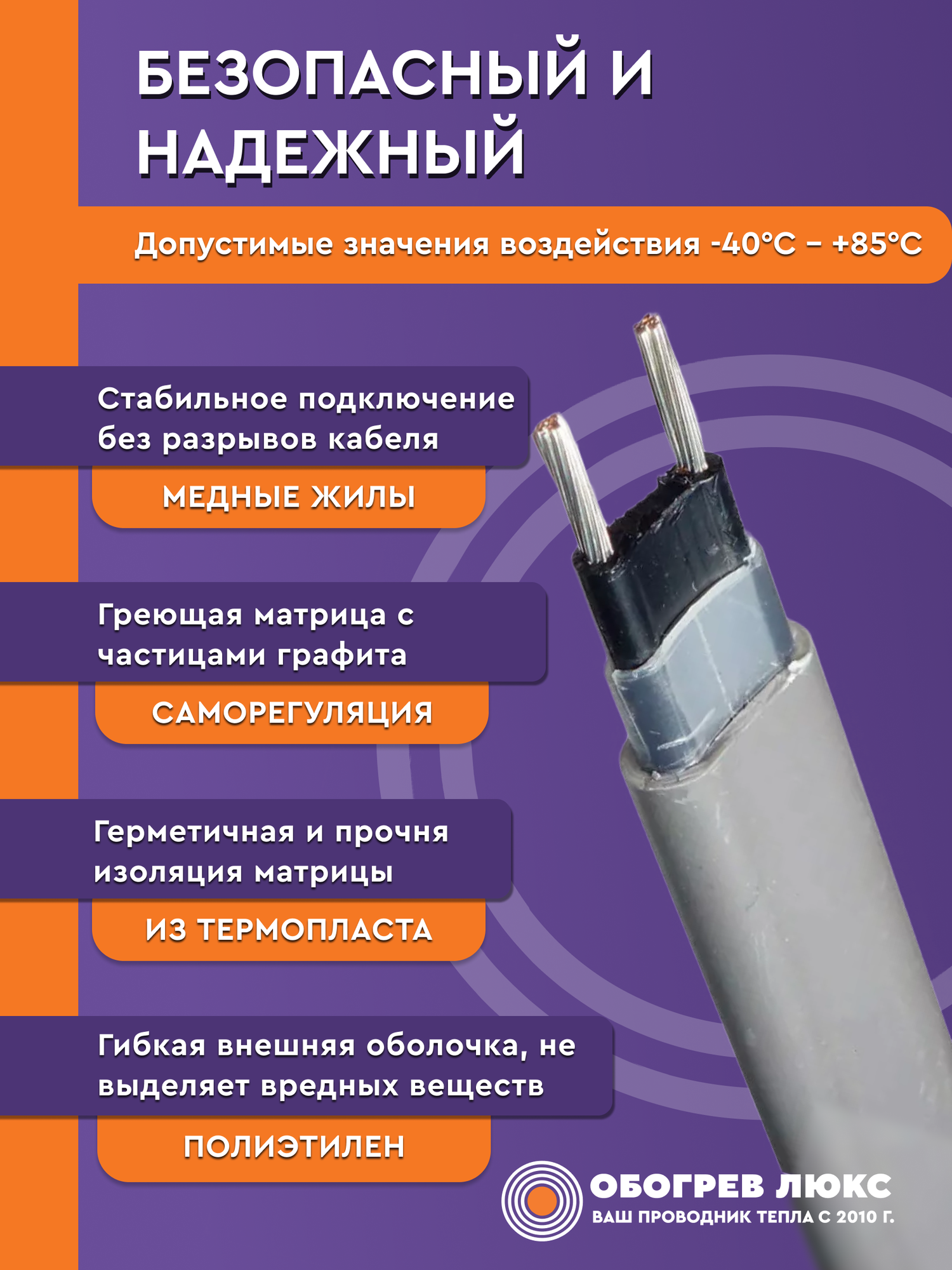 Греющий кабель на трубу 21 метр, 336 Вт, саморегулирующийся, Комплект. "Обогрев Люкс" Lite.