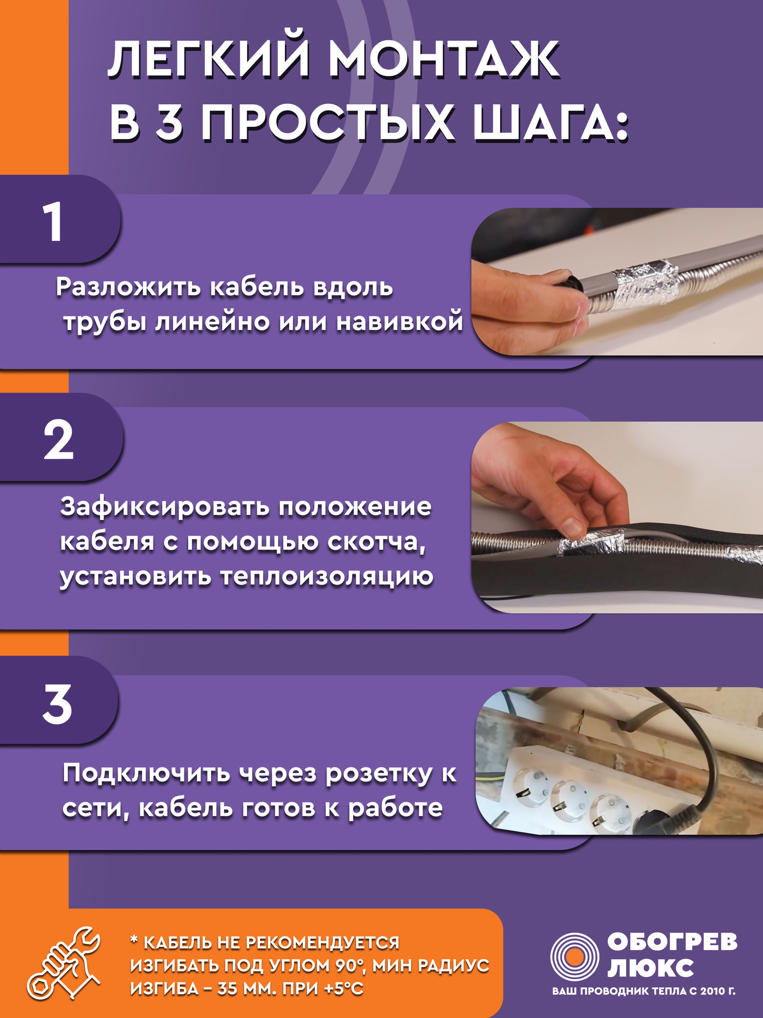 Греющий кабель на трубу 3 метра, 48 Вт, саморегулирующийся, Комплект. "Обогрев Люкс" Lite.