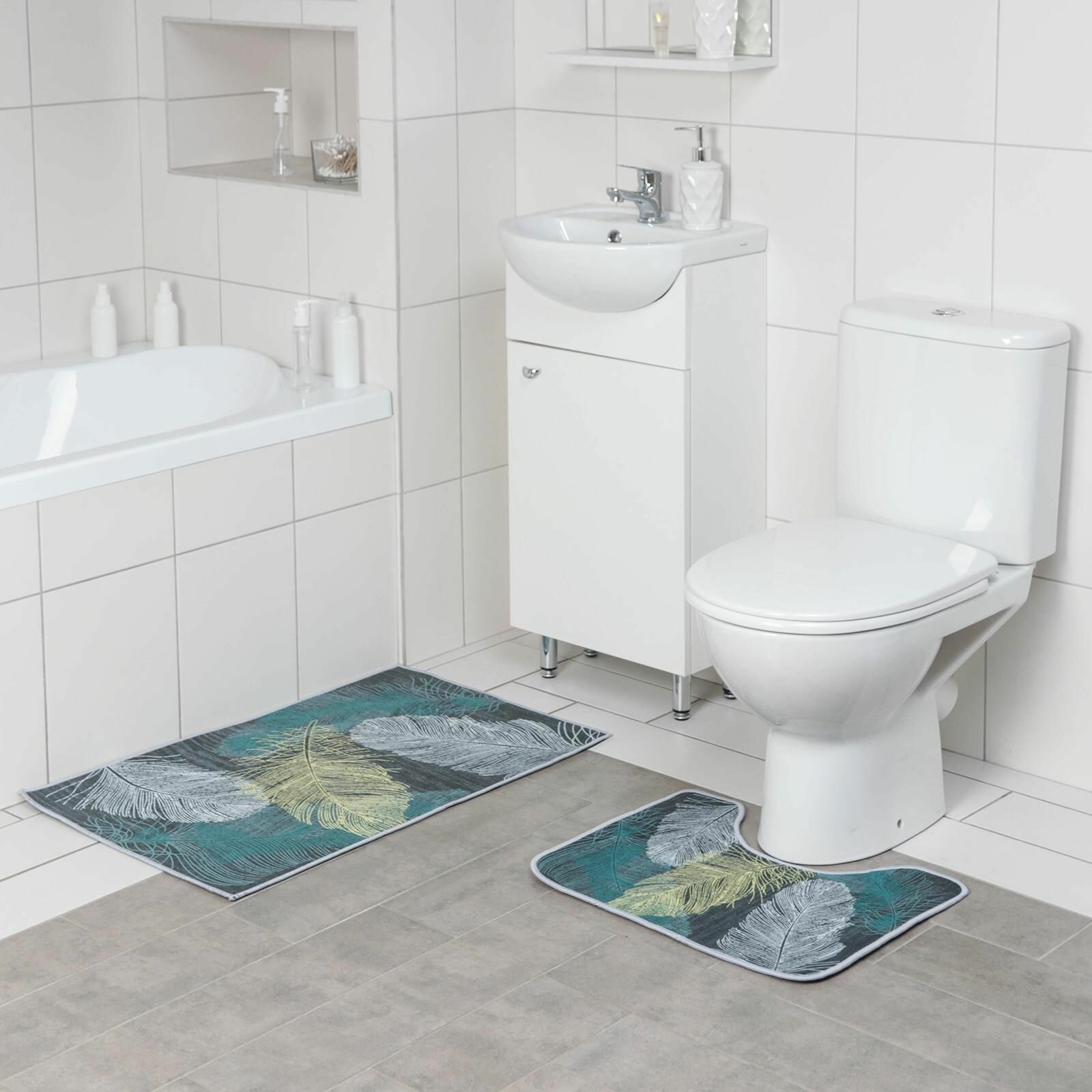 Купить Набор ковриков для ванной и туалета Доляна Перышки, 2 шт: 50x80, 50x40 см