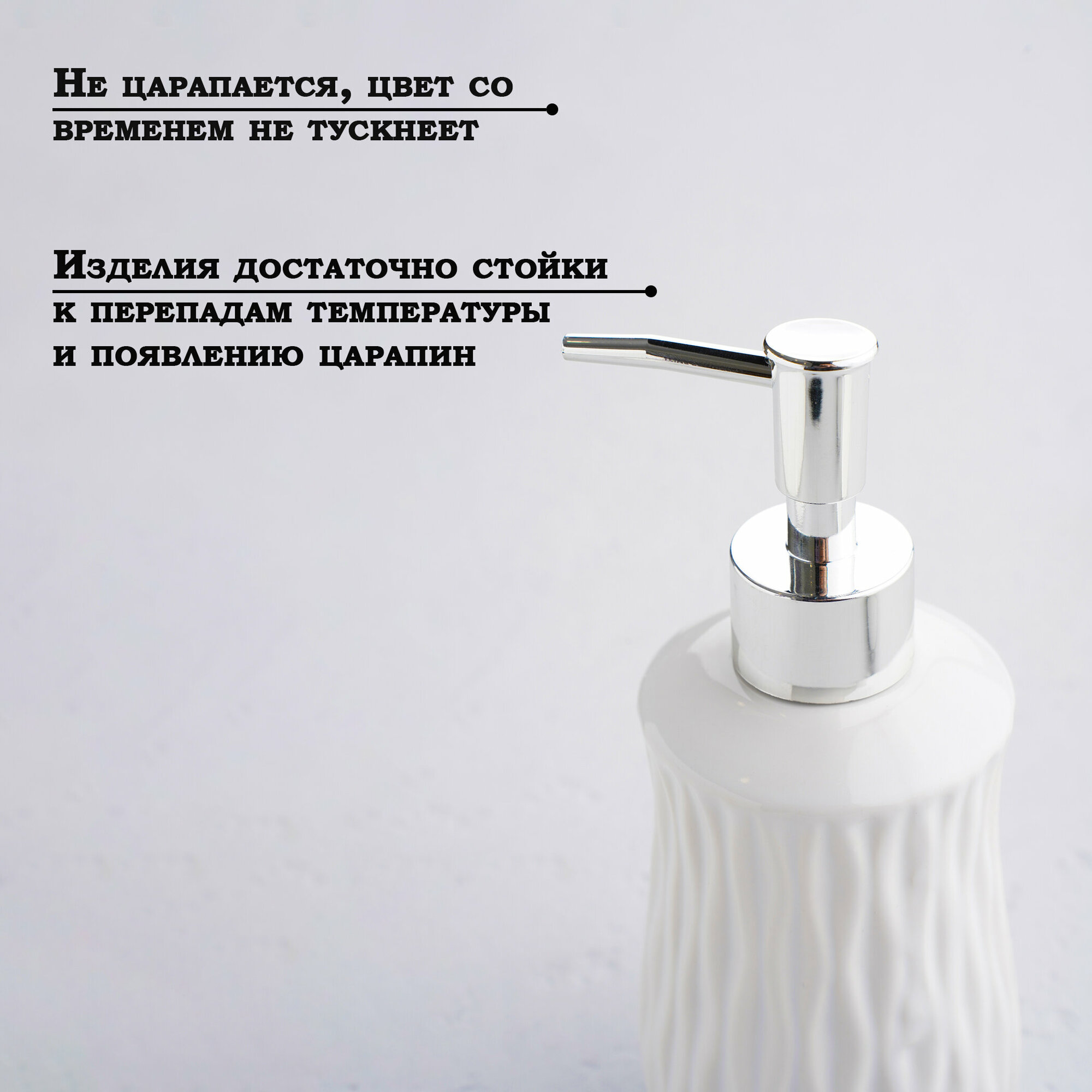Дозатор для жидкого мыла и стакан для зубных щеток с мыльницей, набор 4 предмета Доляна «Течение» цвет белый интересное: