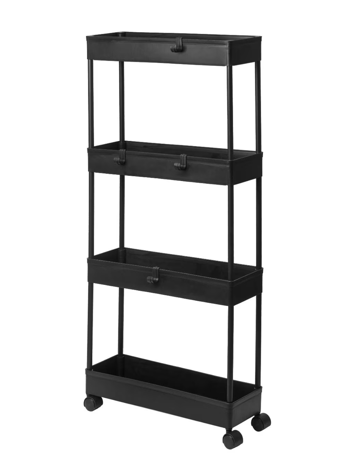 Этажерка на колесиках 4-х уровневая , черный стойка, стеллаж, полка, для ванной кухни , хранение продуктов / Узкий 4 яруса: 87x12.5x40cm интересное: