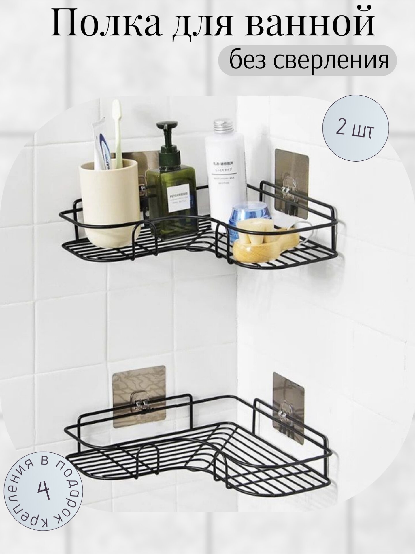 Угловая полка для ванной и кухни, 2 штуки, черная