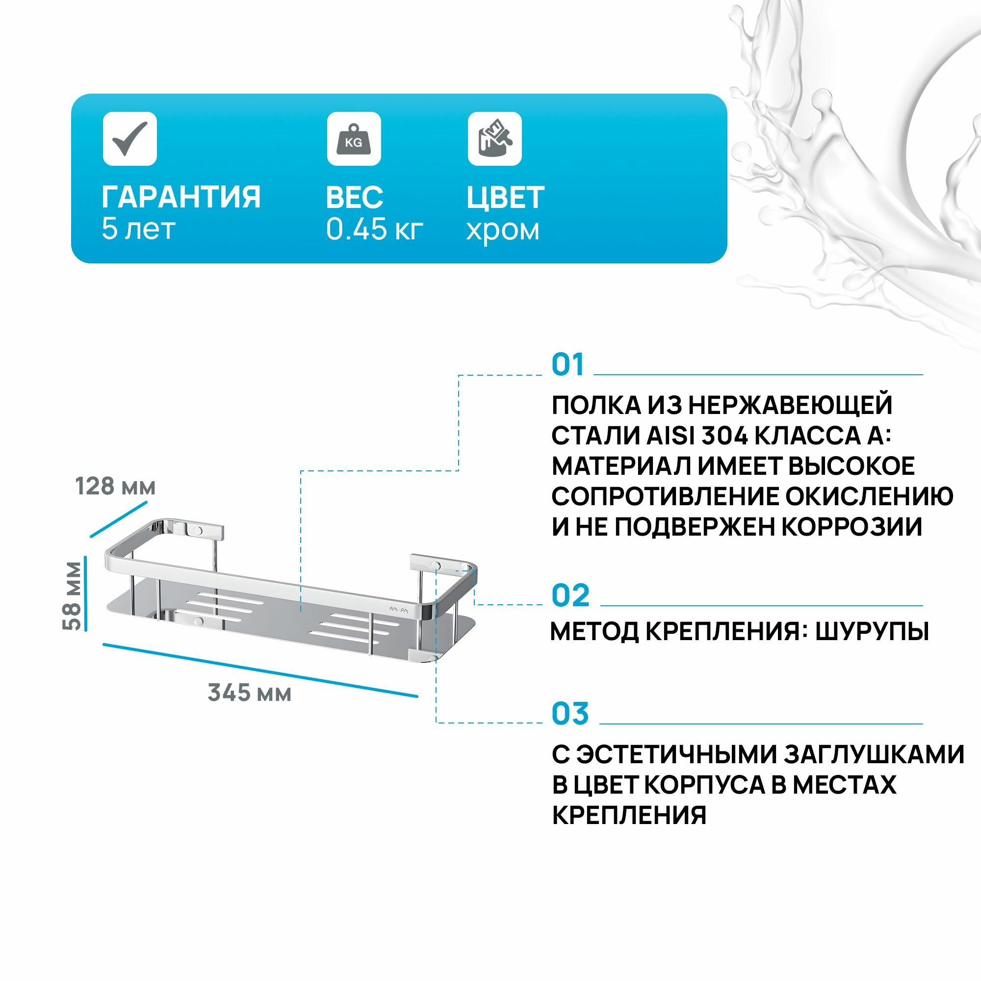 Полка для ванной AM.PM Sense L хром, настенная, нержавеющая сталь