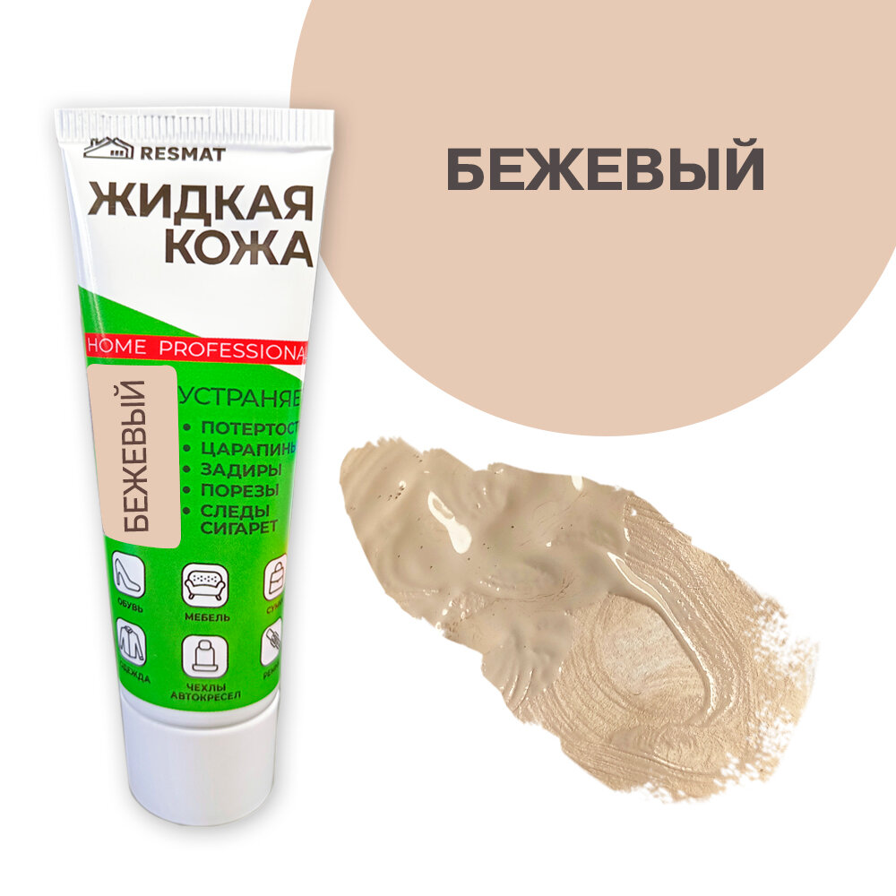 Жидкая кожа для мебели, одежды, восстановитель кожи Resmat 30 мл в тубе, миндальная
