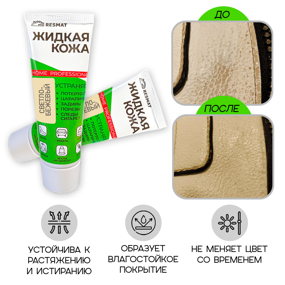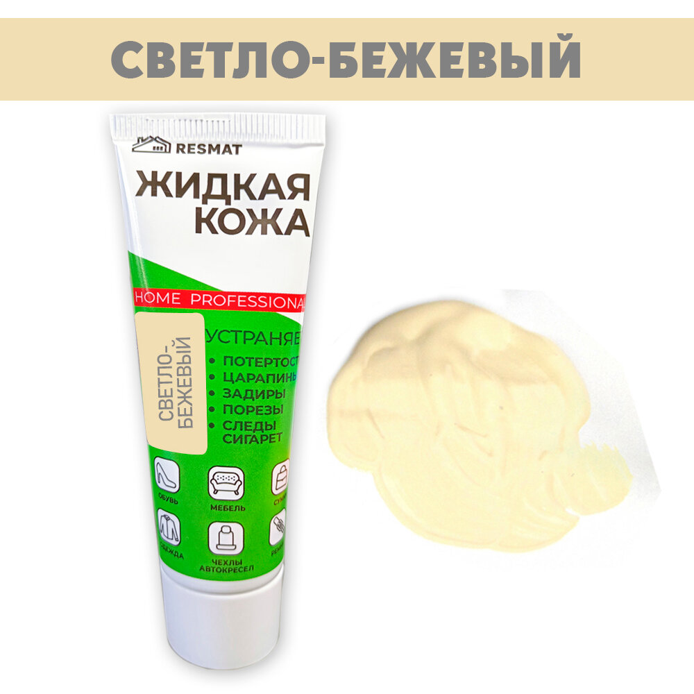 Купить Жидкая кожа для мебели, одежды, восстановитель кожи Resmat 30 мл в тубе, Светло-бежевая