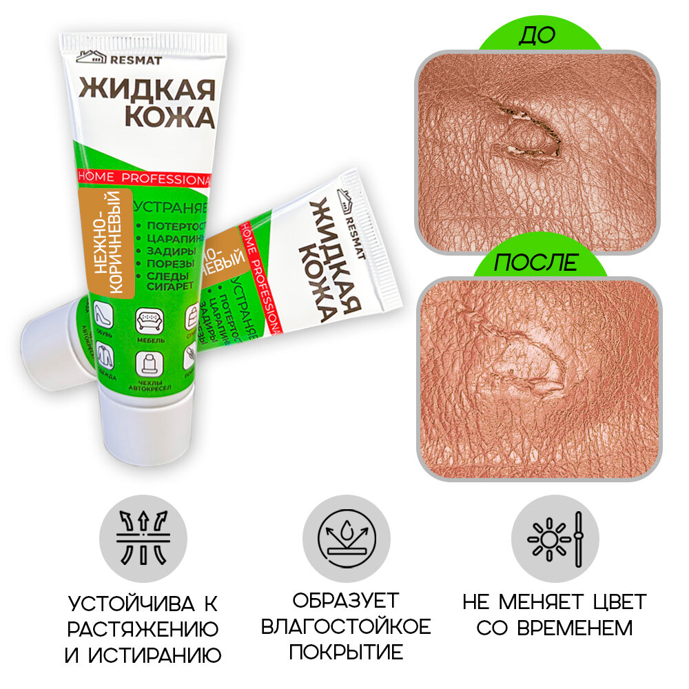 Купить Жидкая кожа для мебели, одежды, восстановитель кожи Resmat 30 мл в тубе, нежно-коричневая