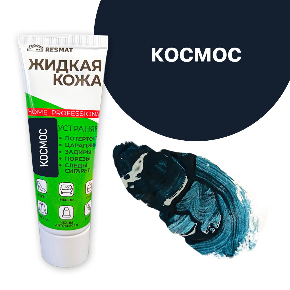 Купить Жидкая кожа для мебели, одежды, восстановитель кожи Resmat 30 мл в тубе, "Космос" сине-черная