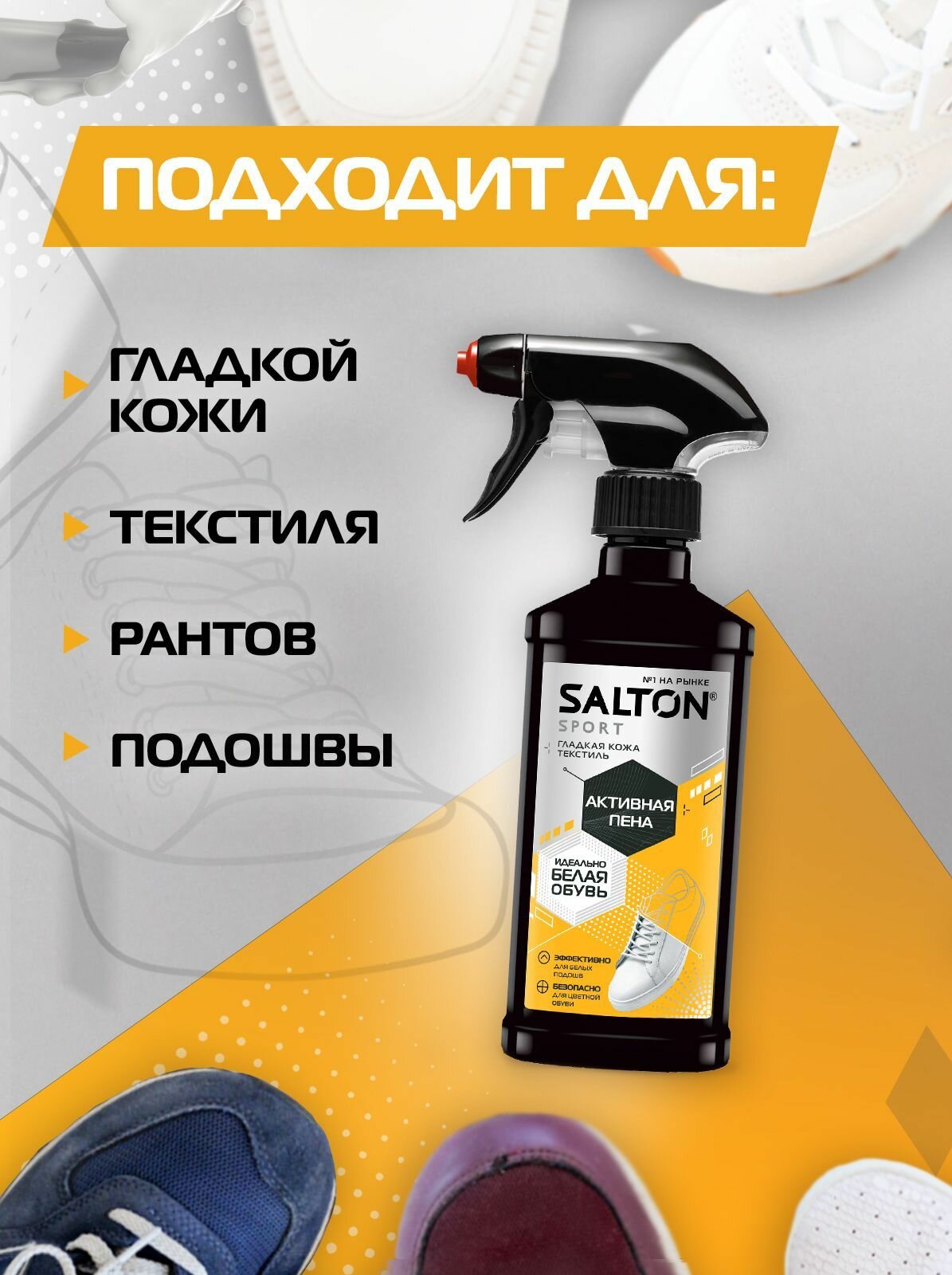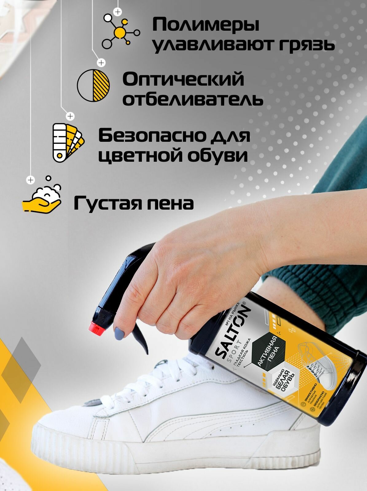 Активная пена для белой обуви + губка кроссовок, Набор для ухода за обувью Salton Sport