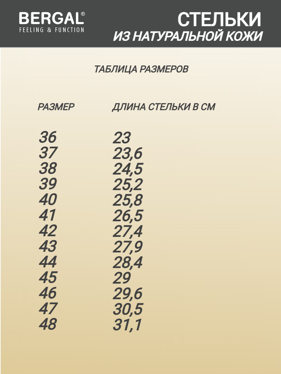 СохранитьСтельки для обуви BERGAL Active Leather размер 47, натуральная кожа, уголь, тонкие интересное: