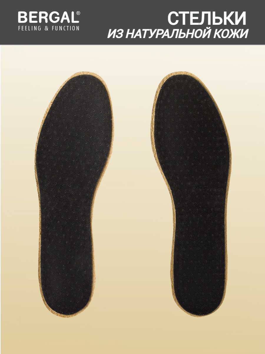 Стельки для обуви BERGAL Active Leather размер 42, натуральная кожа, уголь, тонкие