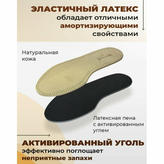 IL1001 Стельки кожа + латекс, Tarrago Leather Carbon, размерный ряд, Размер 35/36
