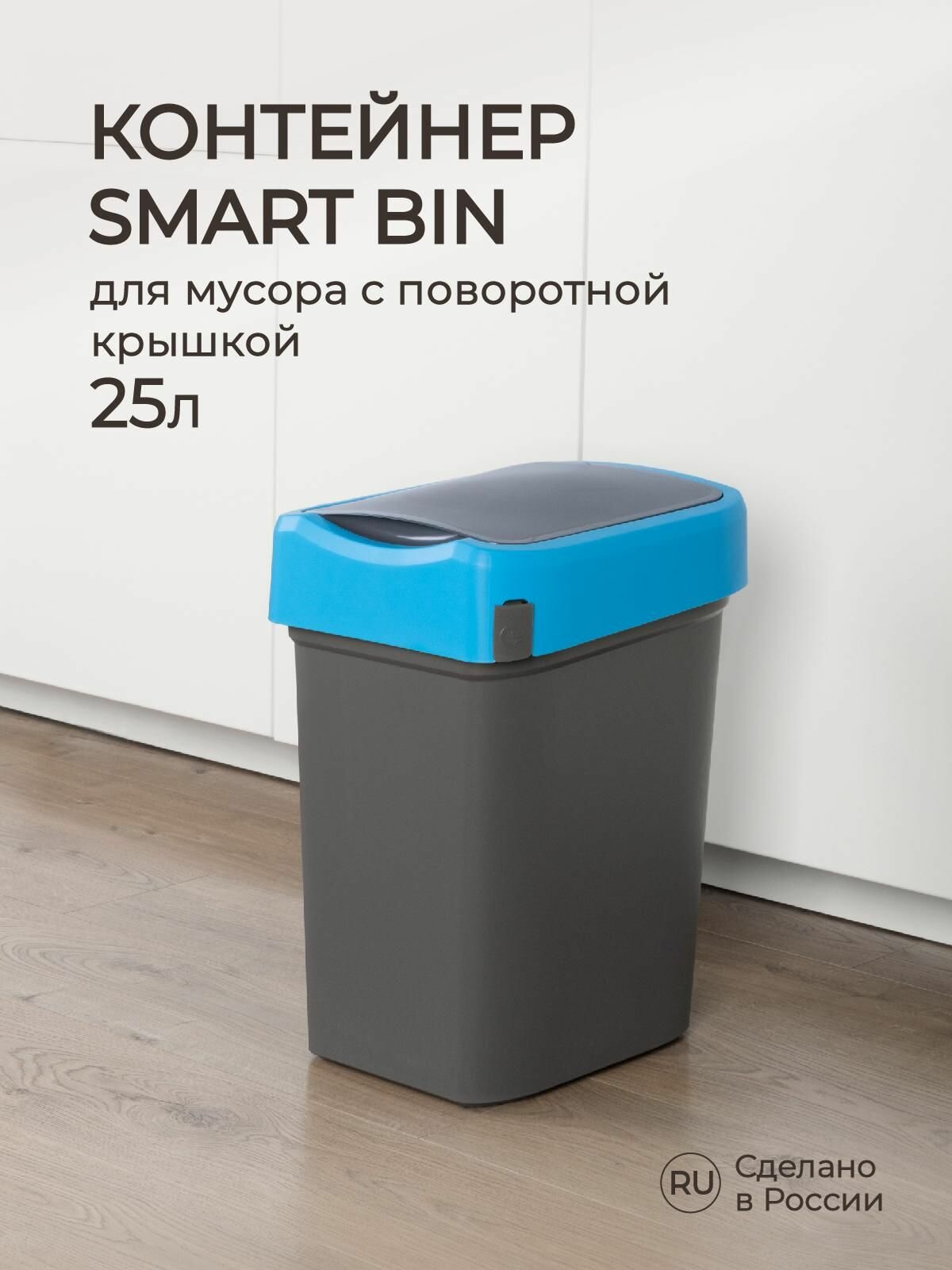 Купить Контейнер для мусора Бытпласт "Smart Bin", с поворотной крышкой, 25 л, синий