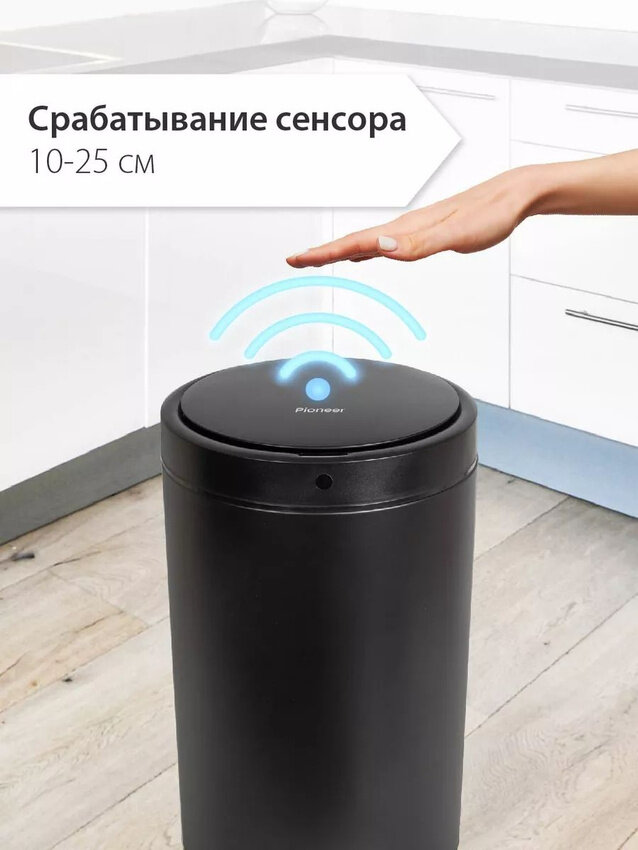 Сенсорное ведро металлическое умное Pioneer WB304B 30 литров, 3 режима интересное: