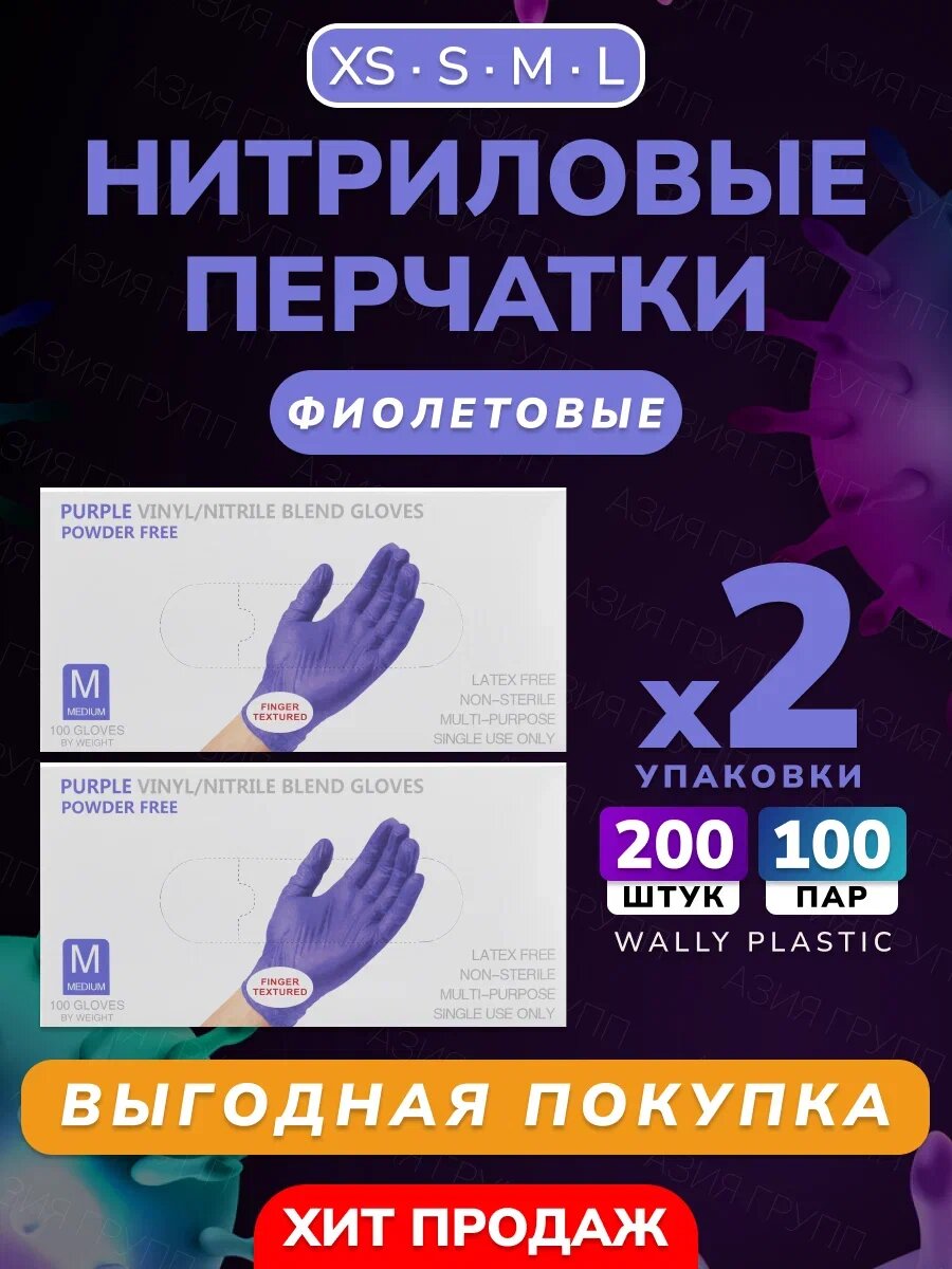 СохранитьНитриловые/Виниловые перчатки - Wally plastic, 200 шт. (100 пар), одноразовые, неопудренные, текстурированные - Цвет: Фиолетовый; Размер M интересное: