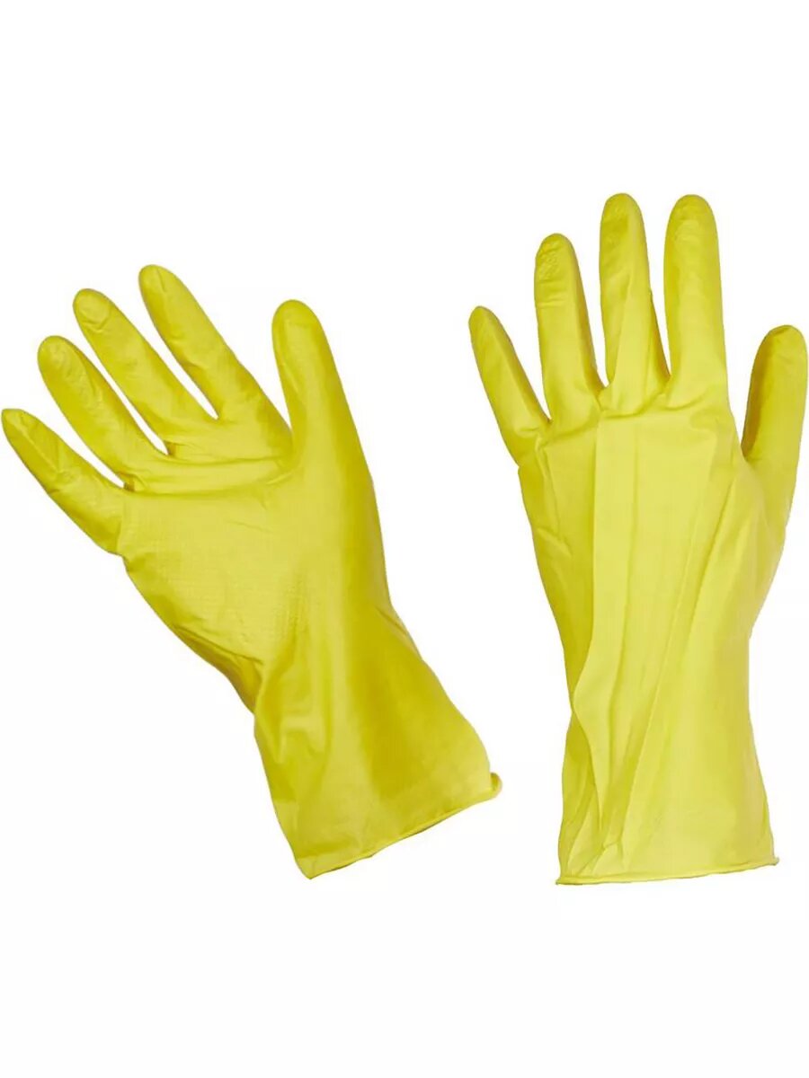 Перчатки многоразовые резиновые VILEDA "Контракт", хлопчатобумажное напыление, размер L (большой), желтые, вес 60 г, 101018
