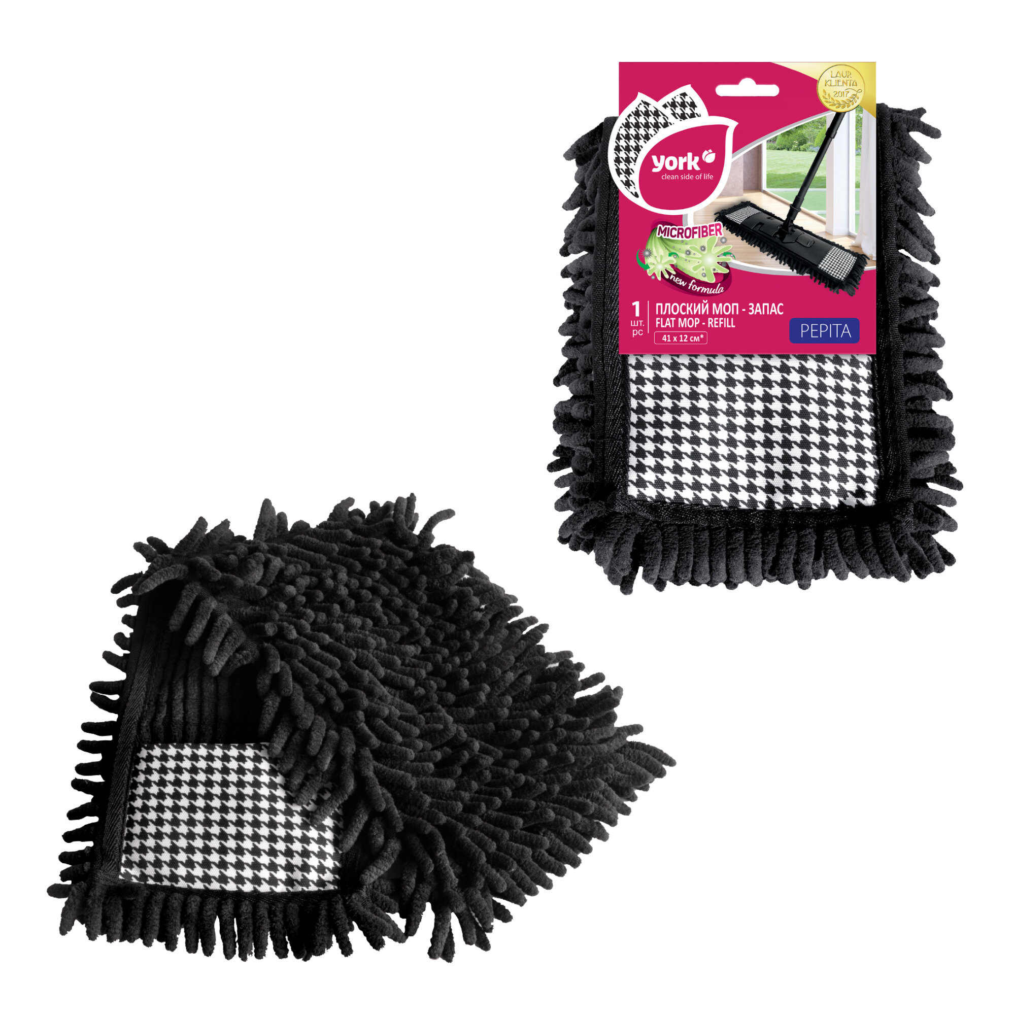 Сменный блок для швабры York Стайл классик Pepita 081850 микрофибра, прямоугольный, 42*13 черный
