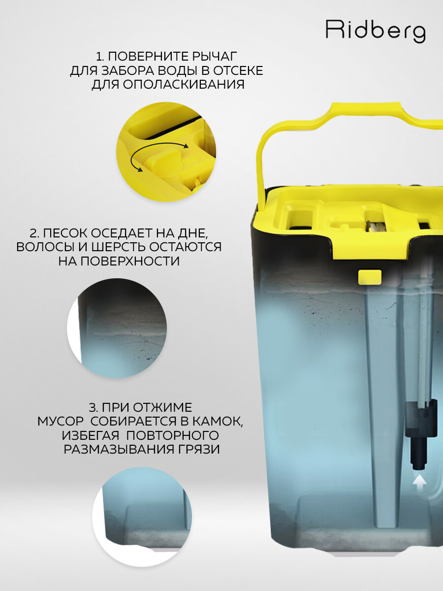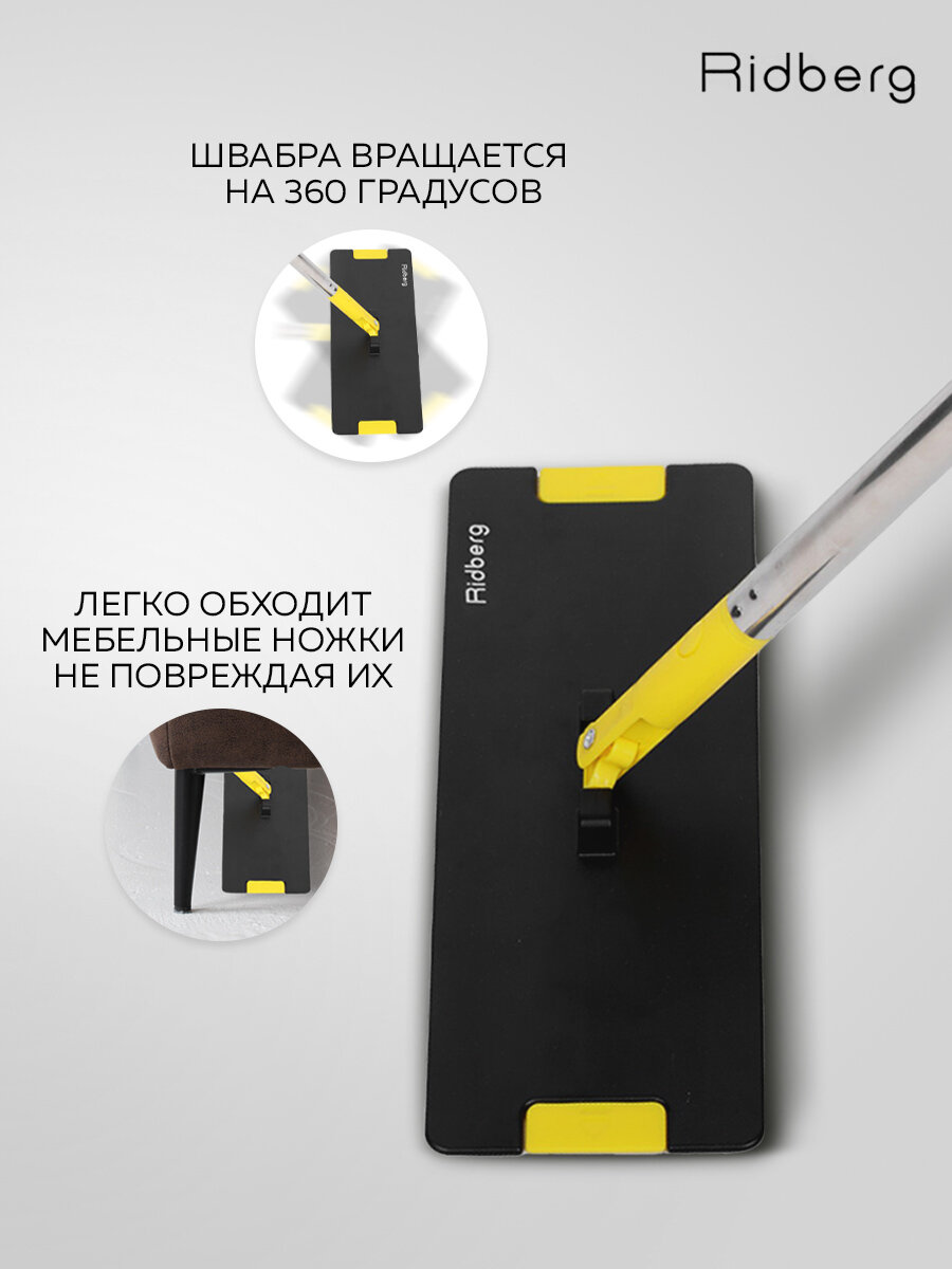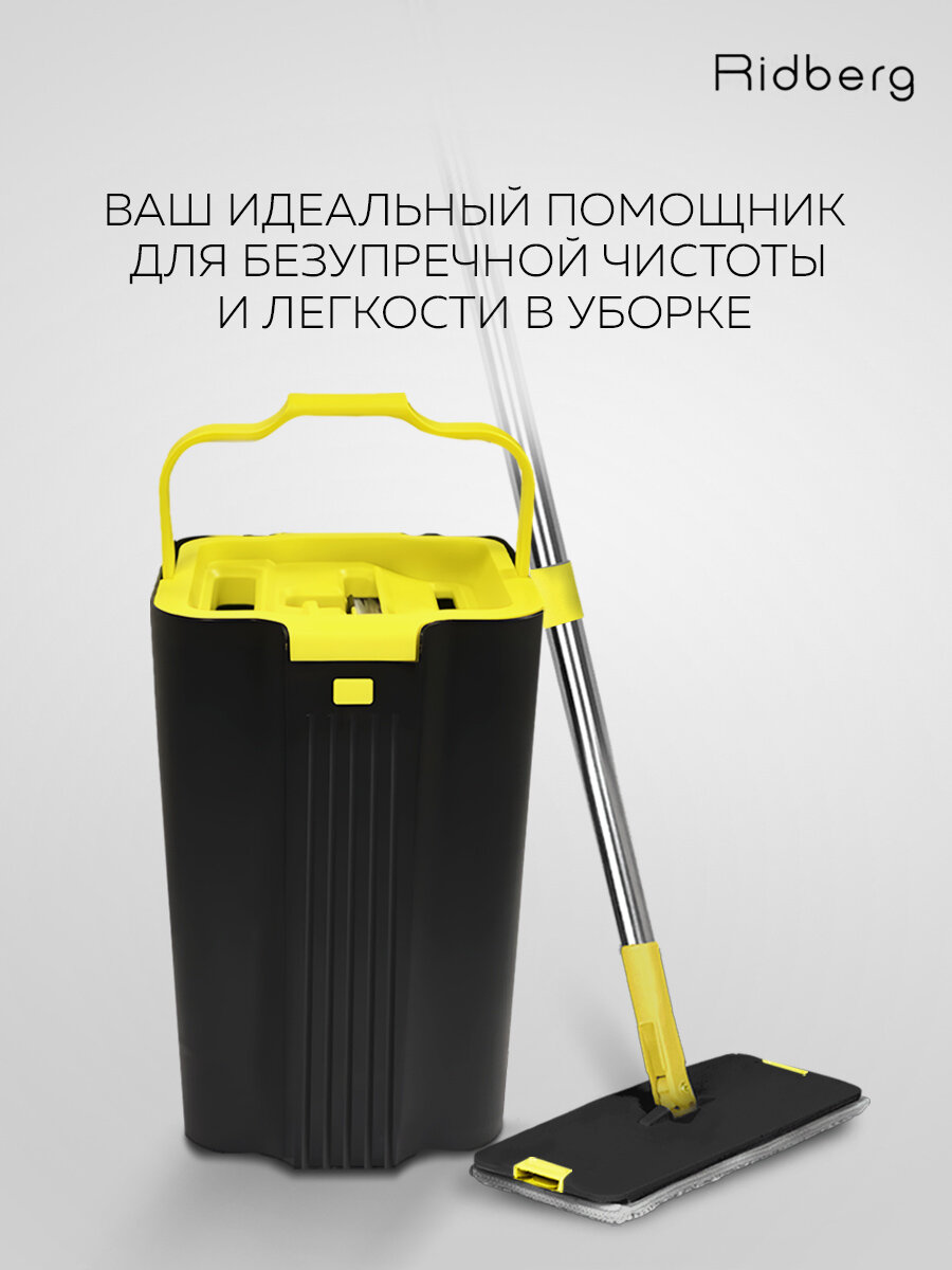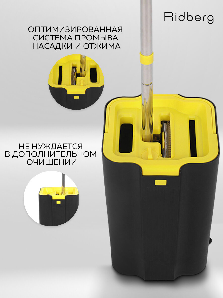 Купить Швабра Ridberg с ведром для отжима Premium Plus (Black/Yellow) / 2 насадки в комплекте