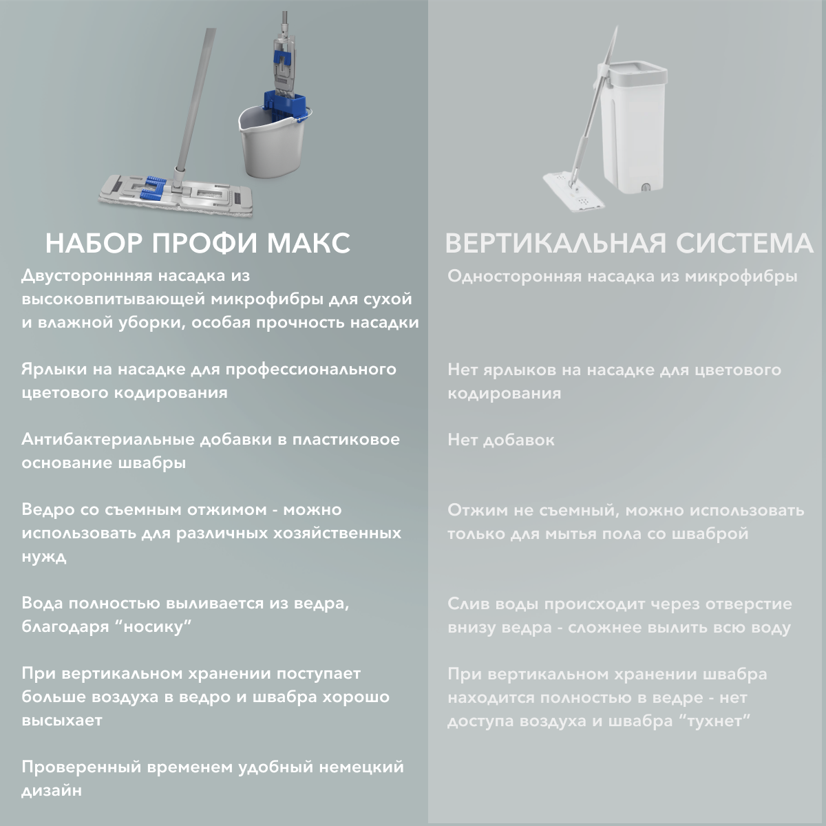 Ниже Вы можете прочитать отзывы на Швабра с отжимом и ведром, двухсторонняя насадка 40х13 см, для уборки всех полов "ПРОФИ МАКС", ознакомится с подробными характеристиками, посмотреть интересные обзоры и фотографии на Швабра с отжимом и ведром, двухсторонняя насадка 40х13 см, для уборки всех полов "ПРОФИ МАКС".