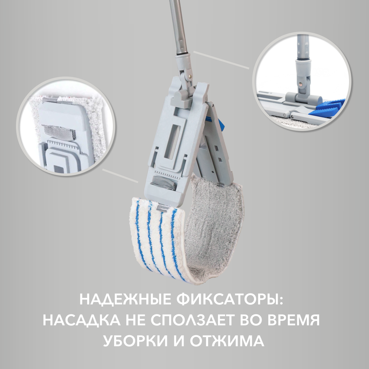 | Дополнительная информация | двусторонняя насадка, бесконтактная уборка, для всех типов полов, вертикальный отжим, антибактериальные добавки, надежные крепления, сборная ручка, держатель для вертикального хранения, для сухой и влажной уборки, сухие и чистые руки |