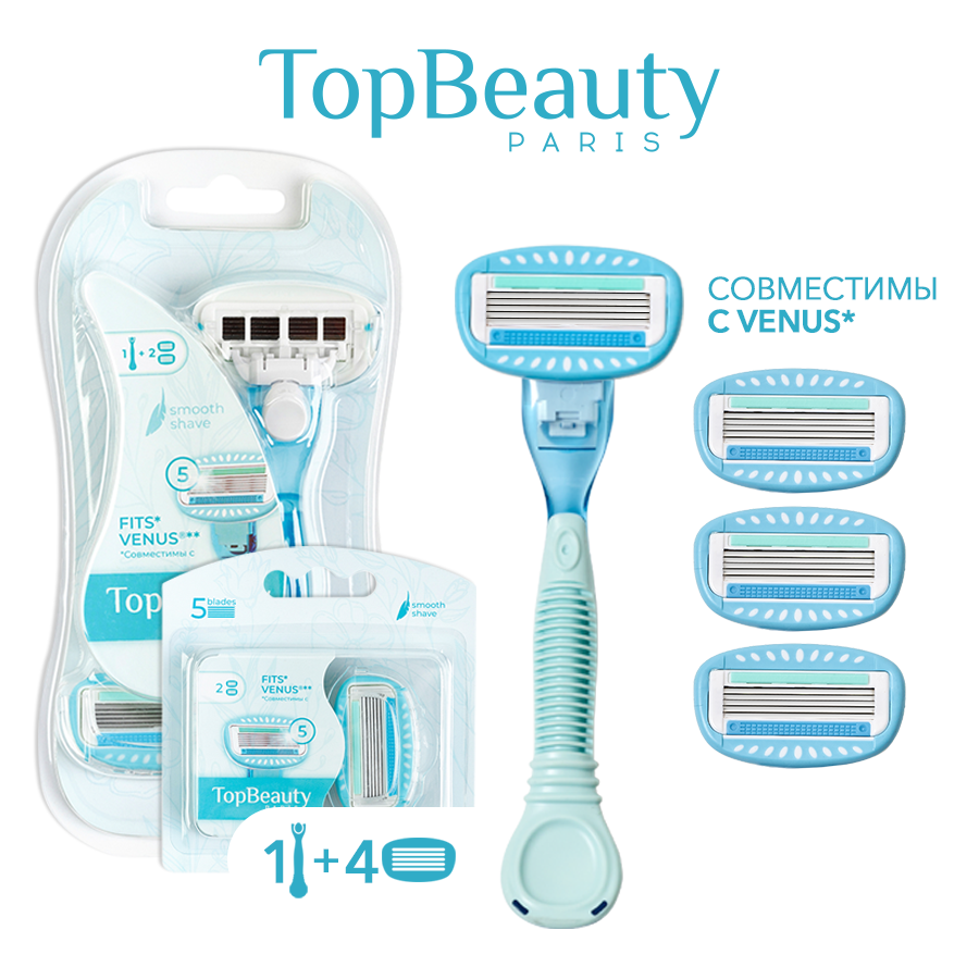 Купить Женская бритва TopBeauty Paris 1 бритва + 4 сменных кассет, 5 лезвий. Совместимы Gillette Venus