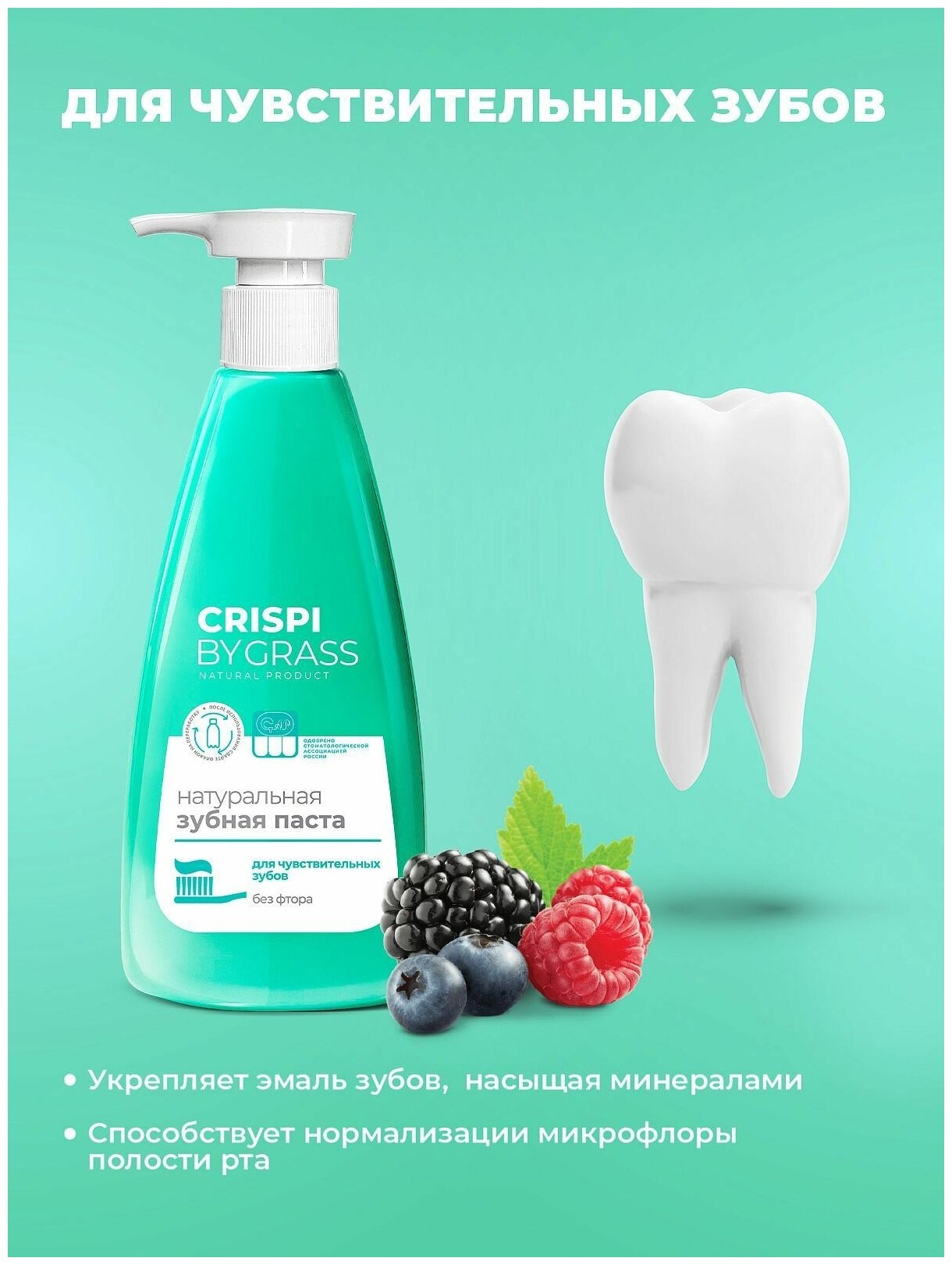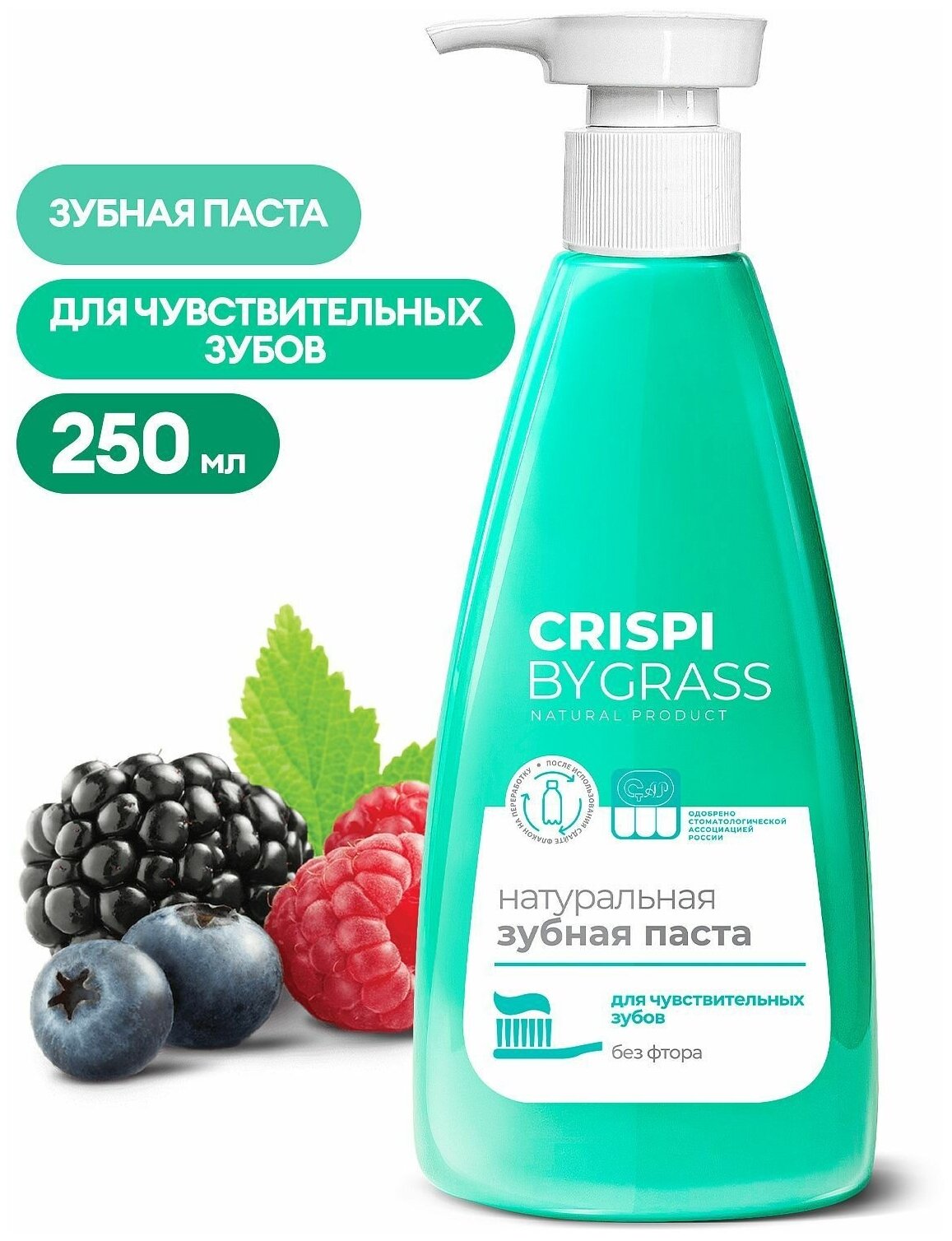 Зубная паста Grass Crispi для чувствительных зубов с дозатором, 250 мл