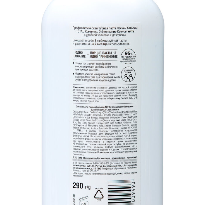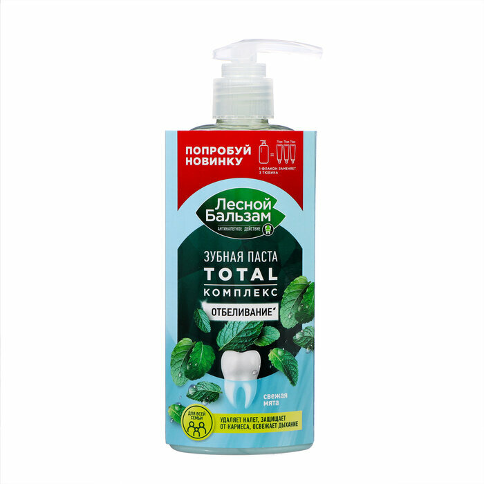 Зубная паста отбеливающая с дозатором Лесной Бальзам Свежая Мята Total Комплекс Отбеливание для всей семьи 290 мл интересное: