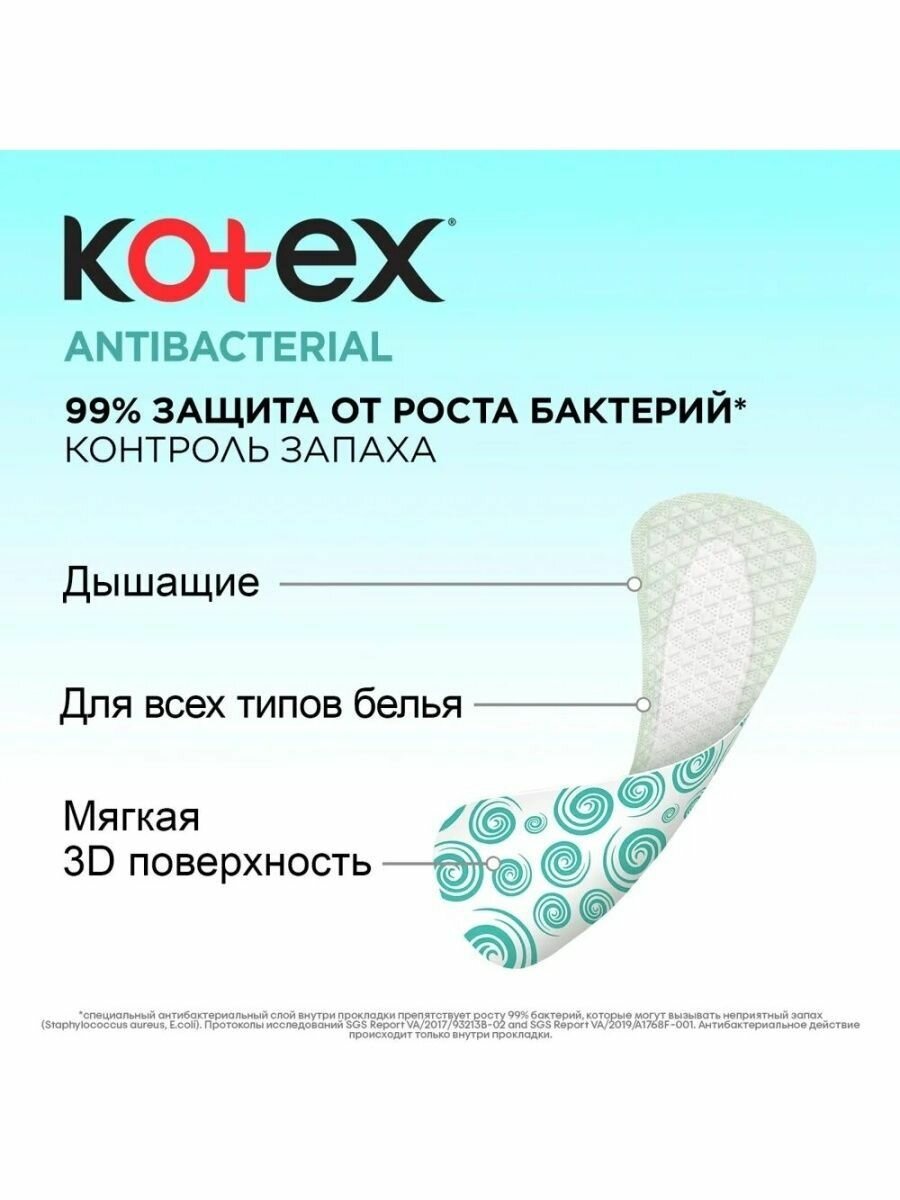 Kotex Прокладки ежедневные Антибактериальные, экстра тонкие, 20 шт/уп, 1 уп