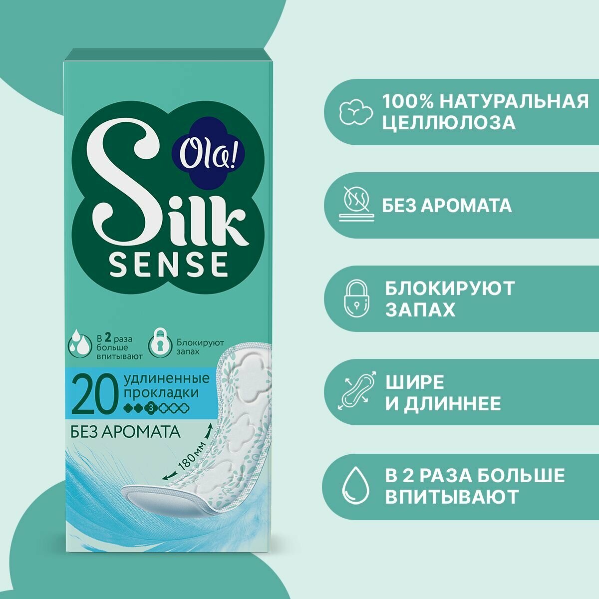Прокладки женские ежедневные удлиненные Ola! Silk Sense, без аромата, 20 шт.