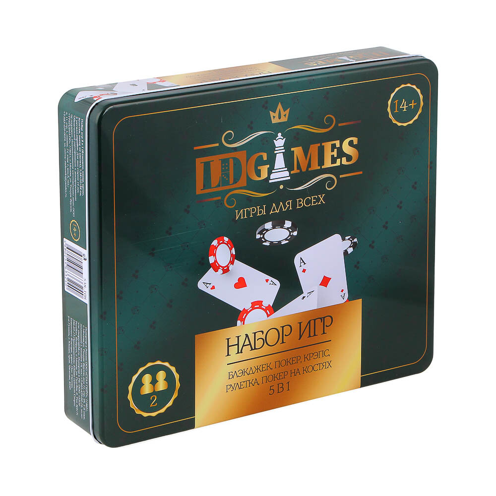 Купить LDGames Набор игр 5в1 (блэкджек, покер, крэпс, рулетка, покер на костях) 7,25х32х28см, в метал. короб