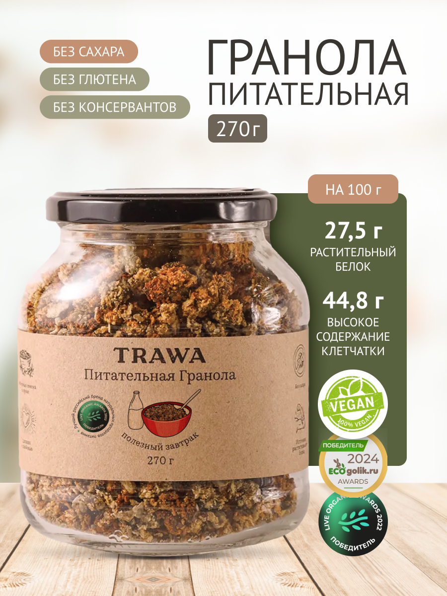 TRAWA Гранола питательная 270 гр протеиновая без сахара и глютена интересное: