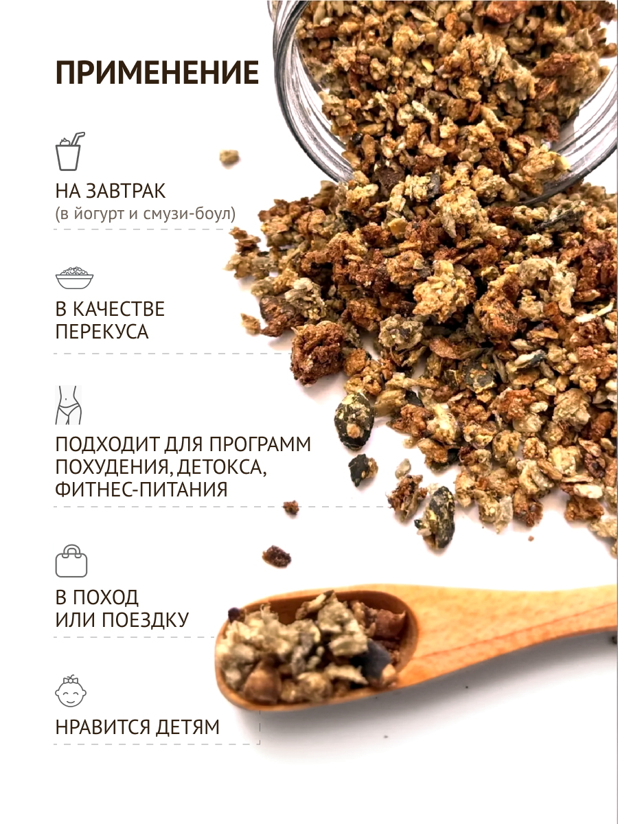 | Состав | миндаль обезжиренный дробленый / тыквенные семена обезжиренные / семена кунжута обезжиренные / конопляные семена обезжиренные / семена подсолнечника обезжиренные / семена чиа / сироп топинамбура / экстракт ванили / гималайская розовая соль |