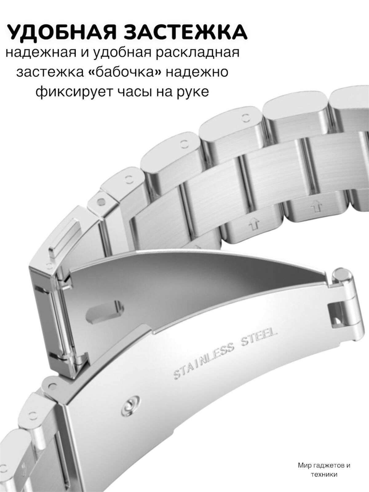 Металлический стальной браслет из нержавеющей стали для Huawei Watch GT / GT2 / Samsung Galaxy Watch 46 мм / Samsung Gear S3/ 22 мм, серебристый.