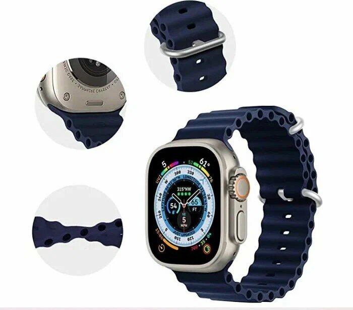 Ремешок Ocean Band для Apple Watch ULTRA 49mm, Series 1-8, SE, 42/44/45/49mm, темно-синий , Рифленый