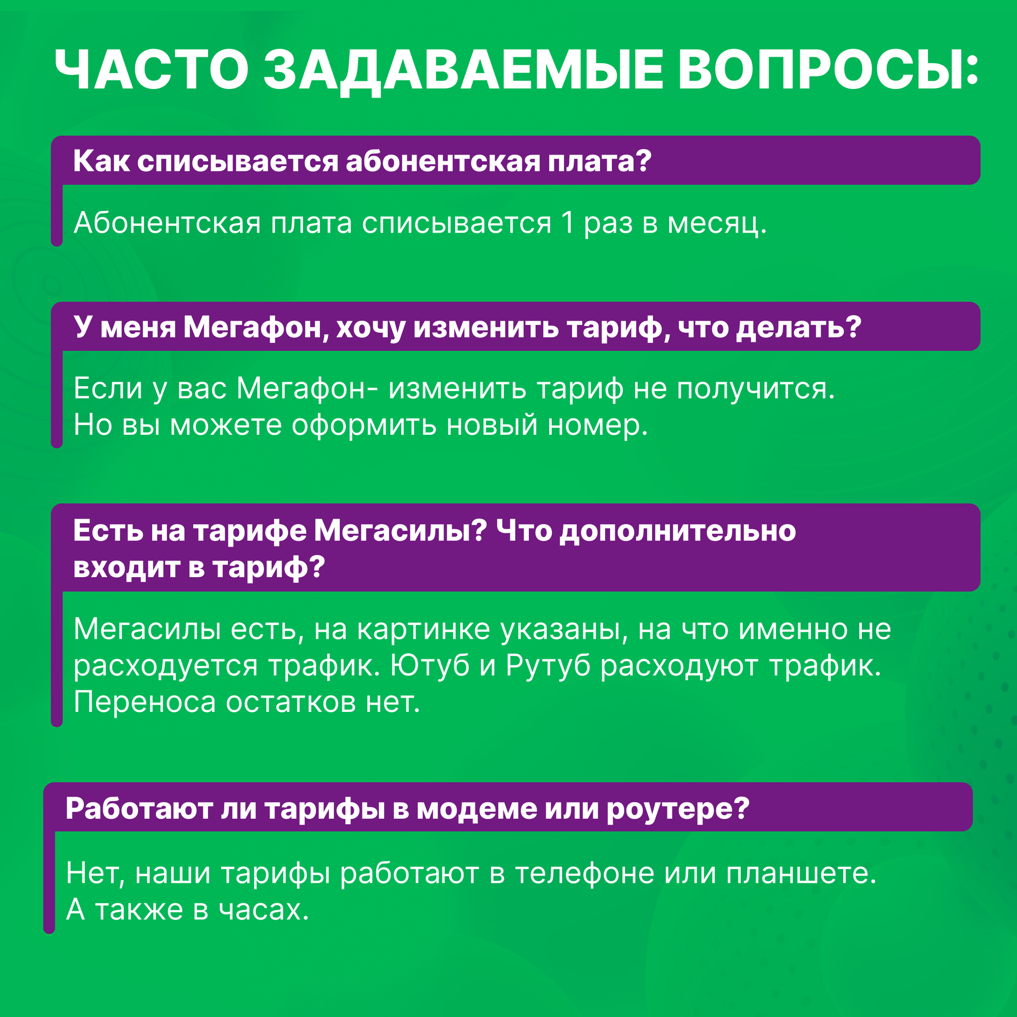 | Дополнительная информация | Выгодный тариф, выбор тарифа на стадии активации, саморегистрация |