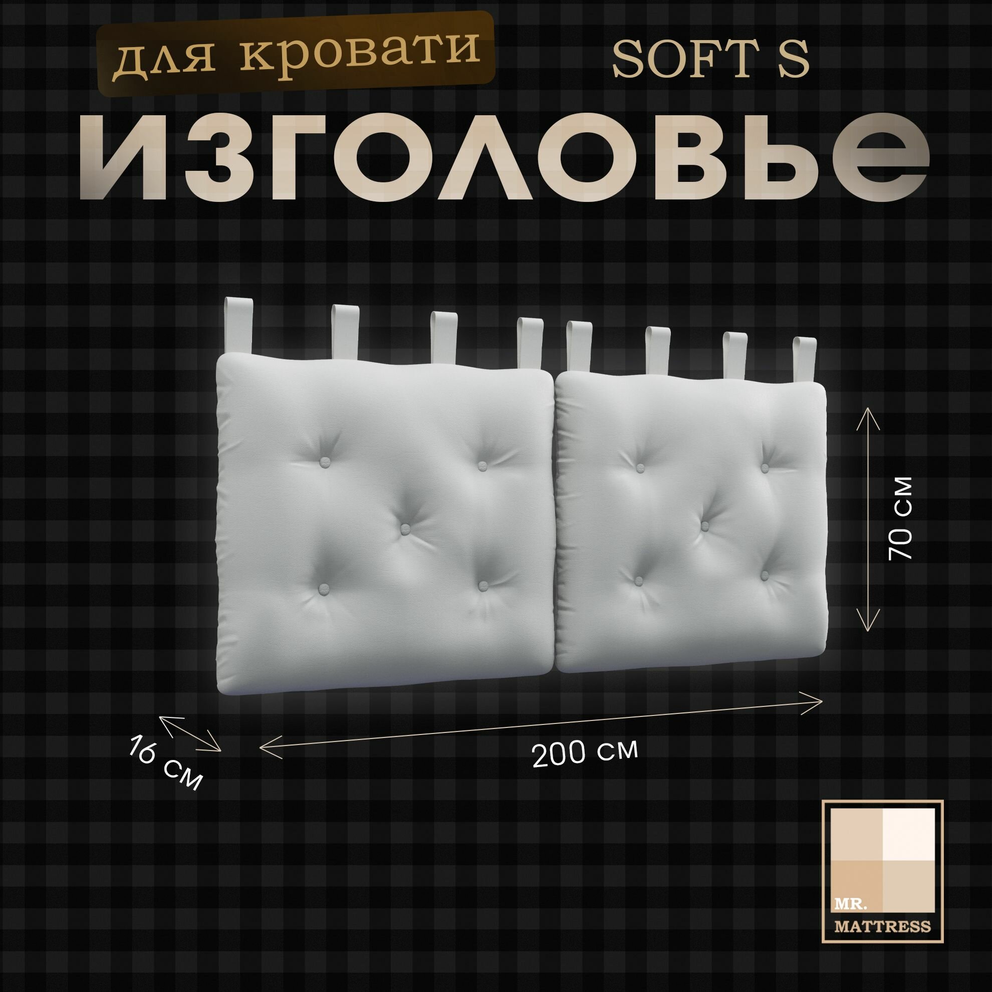Набивное изголовье-подушка для кровати Mr. Mattress Soft S 200x70 White с креплением