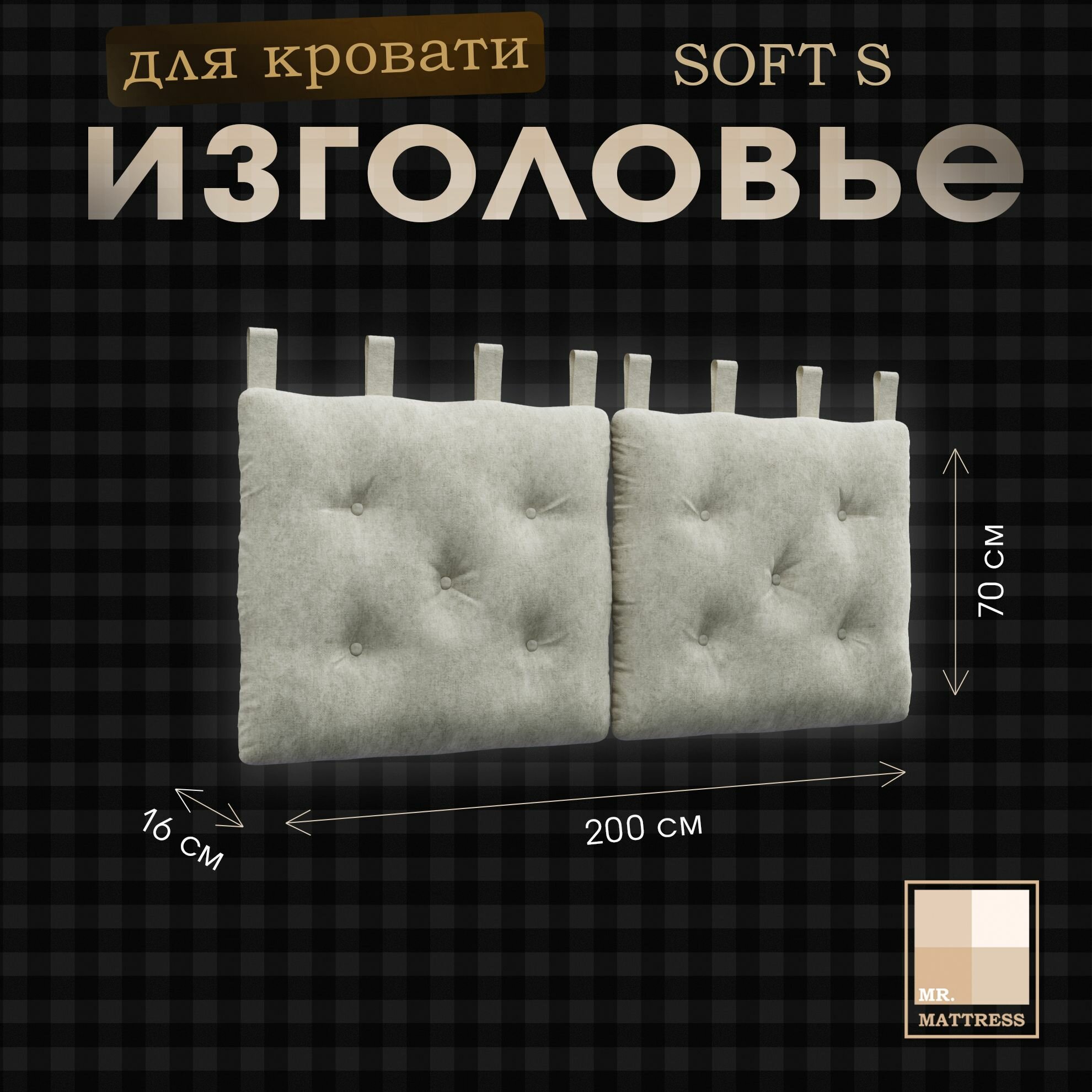 Набивное изголовье-подушка для кровати Mr. Mattress Soft S 200x70 Milk с креплением