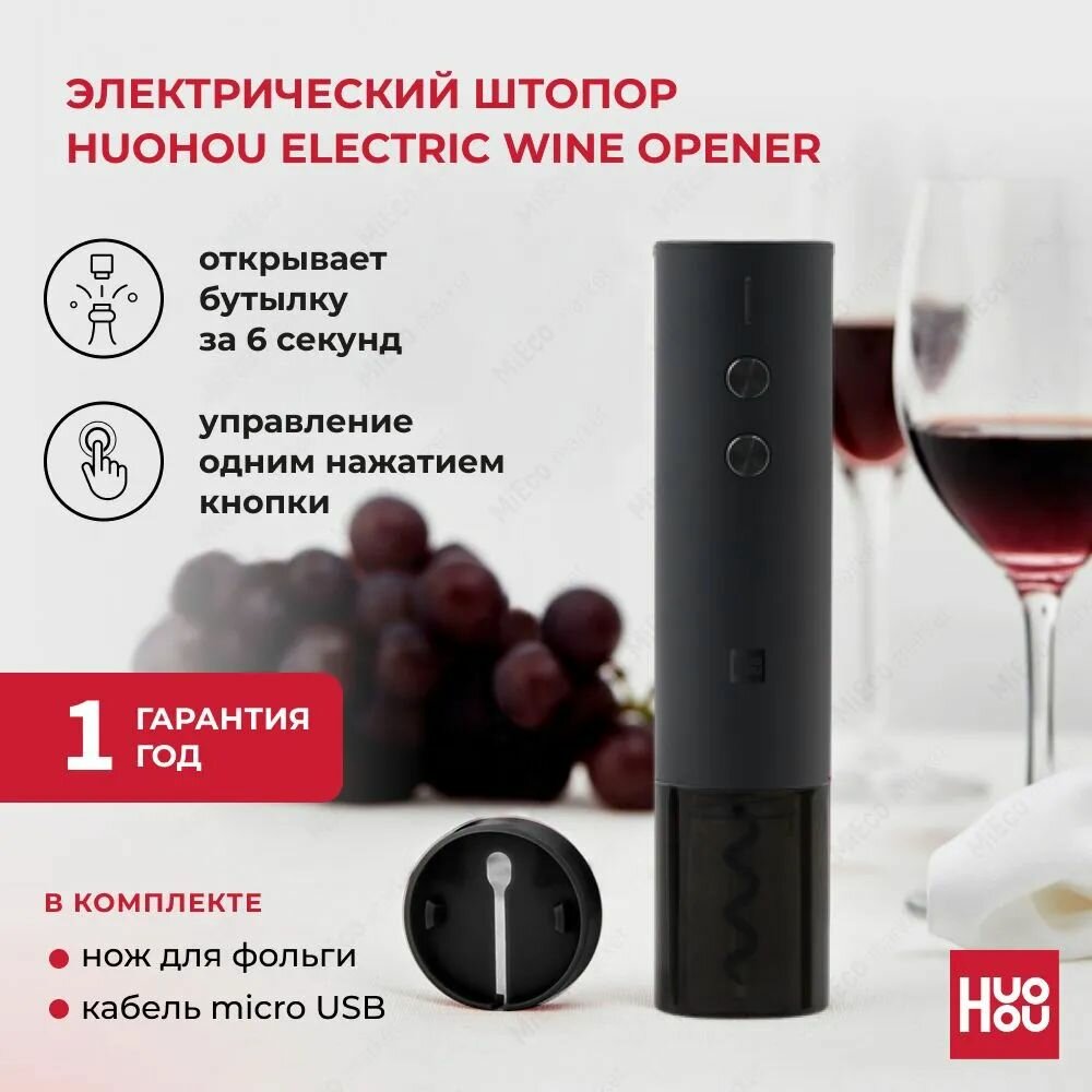 СохранитьЭлектрический Штопор Xiaomi Huo Hou Xiaomi Electric Wine Opener (HU0120) черный интересное: